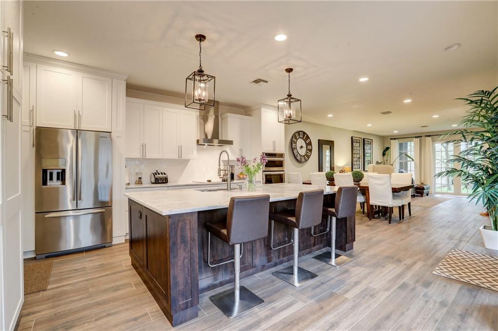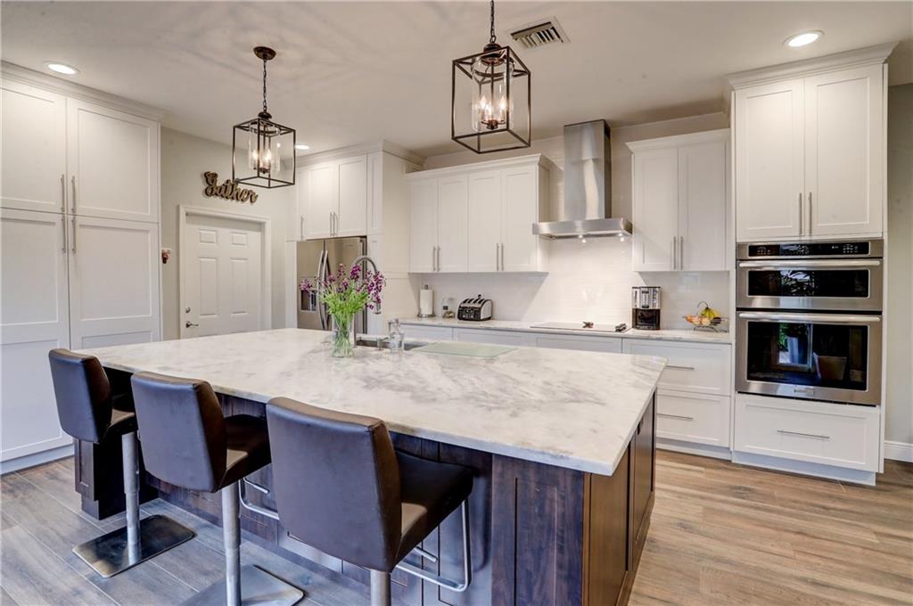 High End Renovated Residence w/over $70k in modern & tasteful upgrades.Better than New.1st floor: Desirable open floor plan w/Kitchen w/Quartzite Counters,eat-in at the bay window,huge island w/top of the line sink & faucet,breakfast bar for entertaining,white wood cabinets w/custom built-ins & pull-outs,double wall oven,Zephyr exhaust hood over 4-burner glass flat top,under counter wine cooler,& ASKO dishwasher.Newer washer/dryer.Wood Plank Tile & High Hat Lighting,Dining & living room,½ bath.2nd floor:New wood floors on stairs w/shoe molding,2 master suites w/attached baths.Master bath w/dual sinks,marble counter,spa tub,& separate shower.Open loft area between split bedrooms,abundant closets & storage home,oversized fenced yard w/room for pool,2-car garage.FHA/VA ok,NO HOA