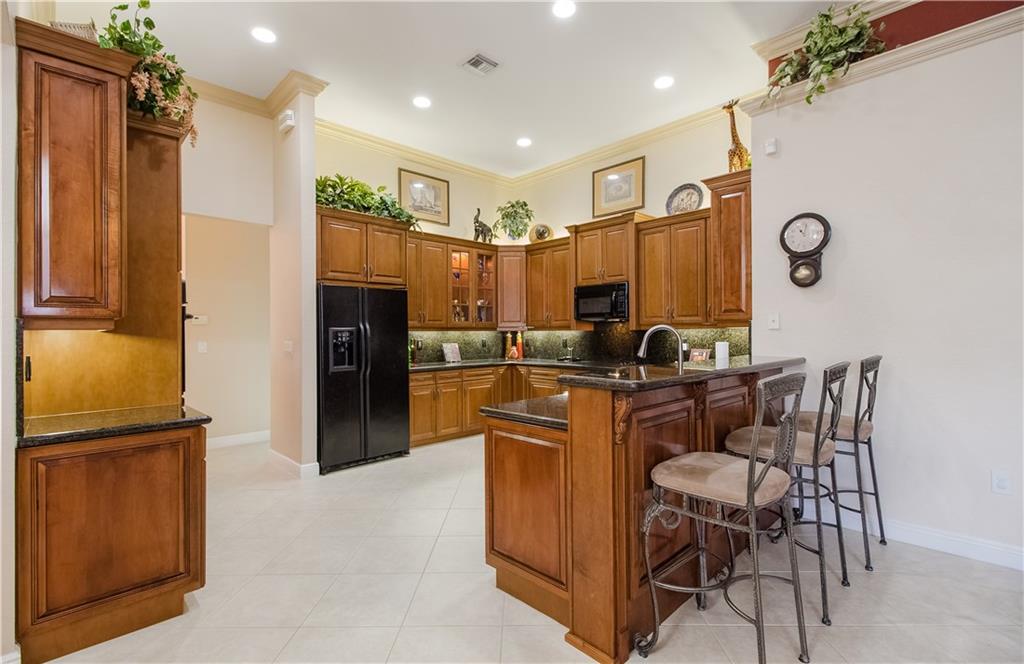 Gorgeous one story home in the resort style community of Sunset Lakes. Enjoy complete privacy in this oversized backyard w plenty of room to entertain or add in a pool. The screen enclosed patio & covered sitting area make it the perfect place to watch the sun set. Inside you will find a gourmet kitchen w furniture quality cabinetry, gorgeous granite countertops, snack bar, and breakfast area. Tile throughout living areas. Upgraded lighting throughout. Freshly painted inside & out. Accordion shutters