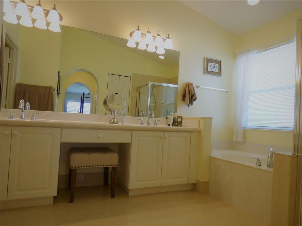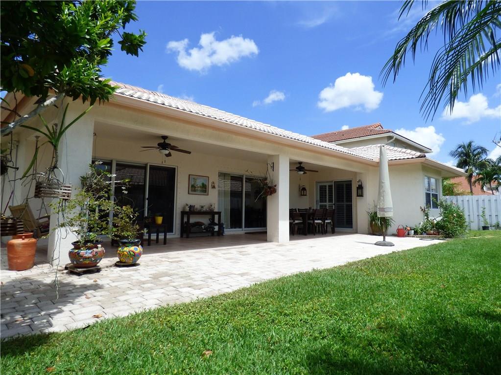 FANTASTIC 1STORY HOME WITH 3BED, 2BATH, 2CAR GARAGE AND WATER VIEWS. VERY WELL KEPT. 24 HRS GARD GATE COMMUNITY. CERAMIC FLOORS IN LIVING AREAS & LAMINATE FLOORS IN BEDROOMS, UPGRADED KITCHEN CABINETS W/S-STEEL APPLIANCES, RENOVATED BATHROOMS, COLONIAL SHUTTERS, VAULTED CEILINGS, BAY WINDOW, 1YR OLD A/C, DECORATORS ITEMS IN WALLS & WINDOWS, RAIN GUTTERS & EXTENDED COVERED PATIO AREA & PAVERS. NICE BACKYARD, FENCED AND WITH ROOM FOR A POOL, FRUIT TREES. SHOWS FANTASTIC, GREAT PROPERTY!