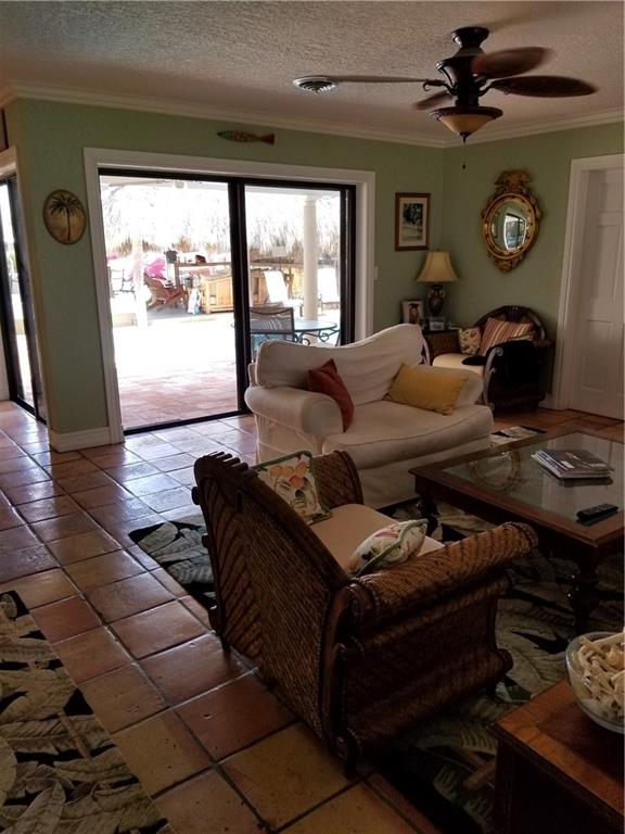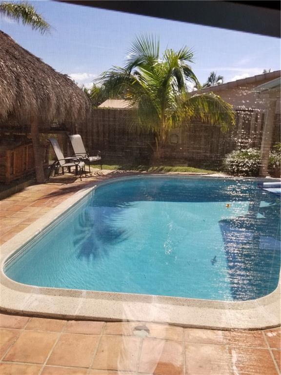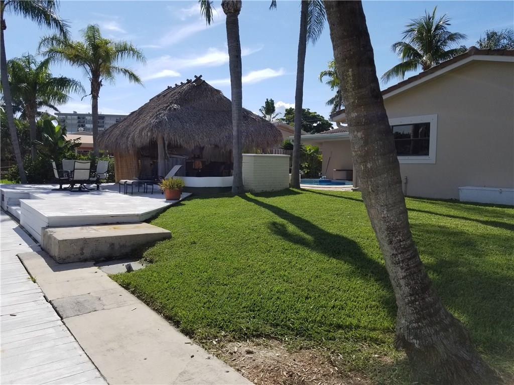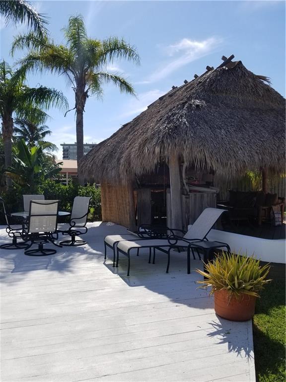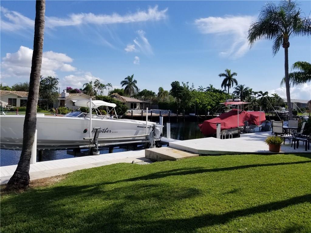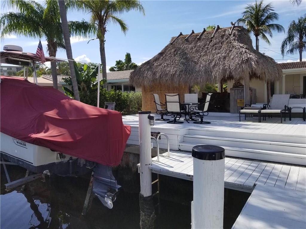 An entertainers home with 8600+ sf lot, boatlift 5,000 lbs, huge tiki hut, built in bbq/firepit, batter pilings, 3 BRs - split plan, 2 baths (cabana bath), 2 car gar., hse.wired for generator, raised seawall cap, 1 ft higher elevation than surrounding streets,70' wf with finger dock, exquisite outdoor area, lg dock, updated electrical, S tile roof, wide driveway ( 4 cars), open kitchen plan, cabinets galore, lg laundry/storage area, crown molding, remodeled bathroom, fabulous landscaping.Incredible house