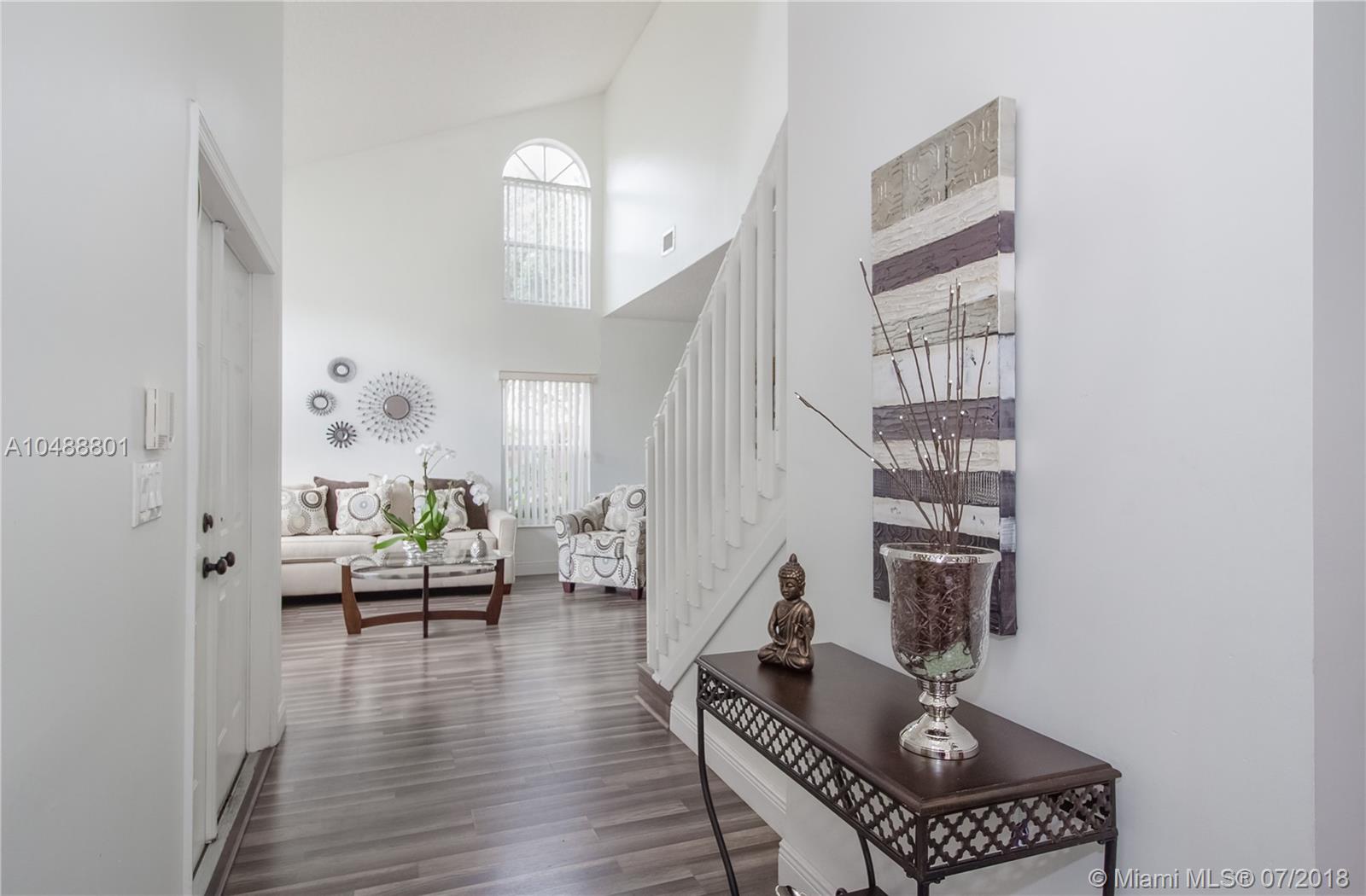 This gorgeous 4/3 in a gated community in Davie is ready to go!!! Renovated less than 3 years ago, property boasts wood kitchen cabinets with Carrara Quartz counter top and back splash, stainless steel appliances, laminated floors in first and second floor, accordion and panel shutters, gutters and paved patio. Very spacious floor plan that includes living, dining, 1 bedroom and 1 bath, breakfast area and family room on the first floor and 3 bedrooms/2 baths on the second floor. BB-Q Area, for memorable family gatherings. Small family oriented community. Good school system. Centrally located with 5 minutes access to I-595, I-75 and Sawgrass expressway. 20 minutes away from Ft Lauderdale airport and 25 minutes to FLL beaches. Low association fee. As-Is.