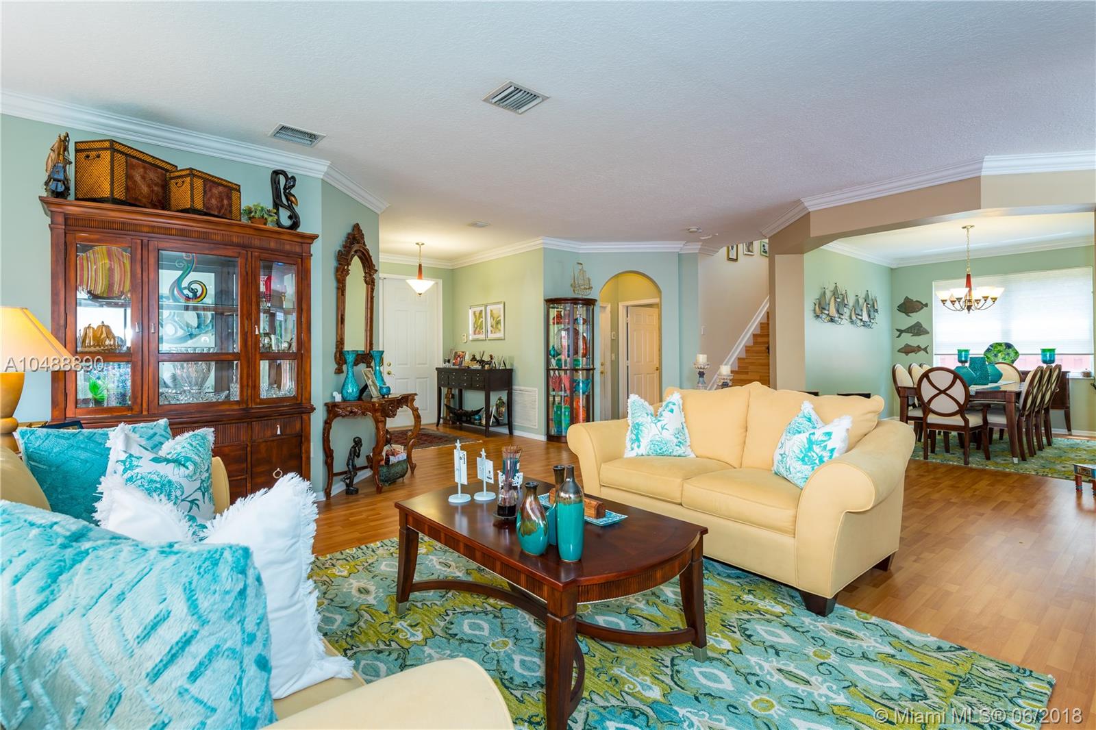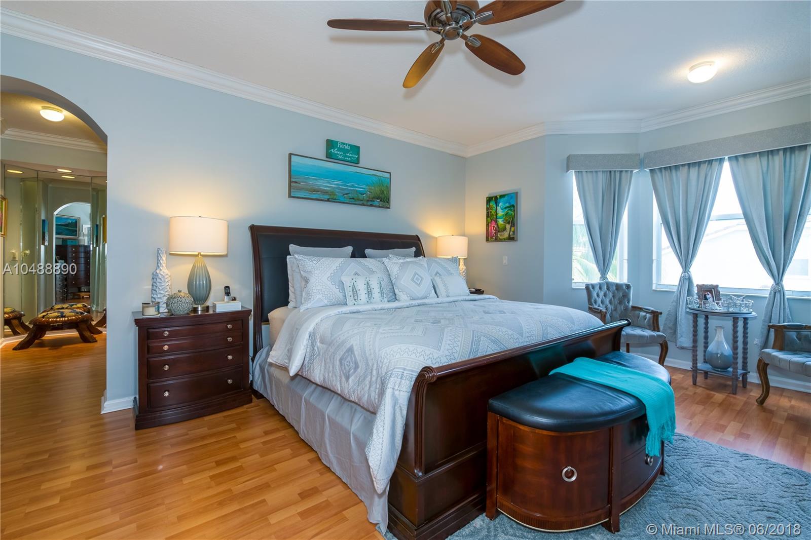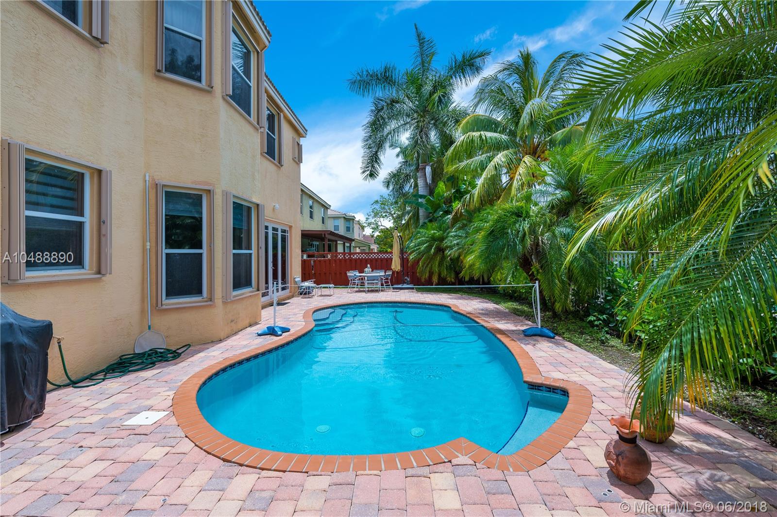 Rare Aurora model beautiful two stories with fenced-in pool home in the highly sought-after guard-gated community of Riviera Isles. Spacious, well kept, and very clean. Stainless steel appliances with lots of windows, open updated kitchen with lots of cabinets leading to a breakfast nook and family room, perfect for entertaining. High ceilings throughout, split bedroom plan, large Master bedroom with bay window and huge walk-in closets with office(den upgrade). Enjoy resort style living at its best. Amenities include pool, gym, basketball courts, clubhouse and more. Close to schools,shopping, restaurants and major highways. Will not last!