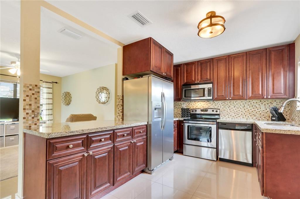 Charming east side 3BR/2BA pool home tucked within the Lyons Park community. Located in A-rated McNab elementary district. Renovated kitchen with stainless appliances, cherry cabinets and granite counters. Open floor plan with porcelain tile floors throughout home. Updated baths. Additional sunlit family room. Oversized indoor utility room w/additional storage and W/D. Covered patio, pool, new fence for year-round FL entertaining. Covered parking. Quiet street with sidewalks perfect for kids and pets.