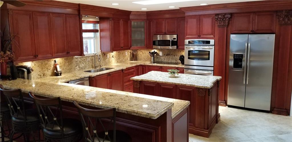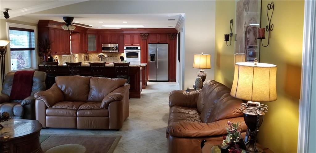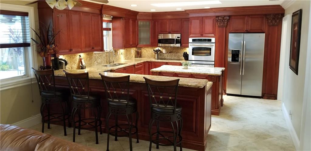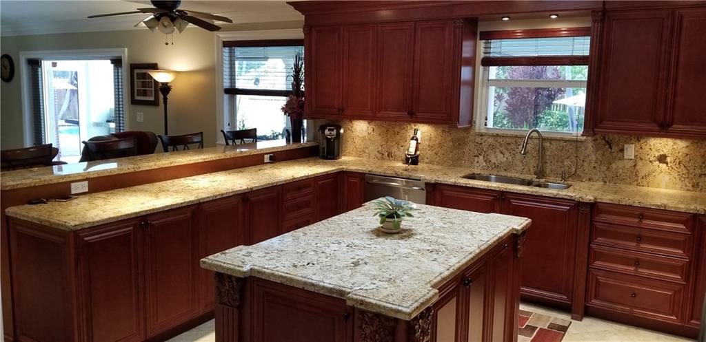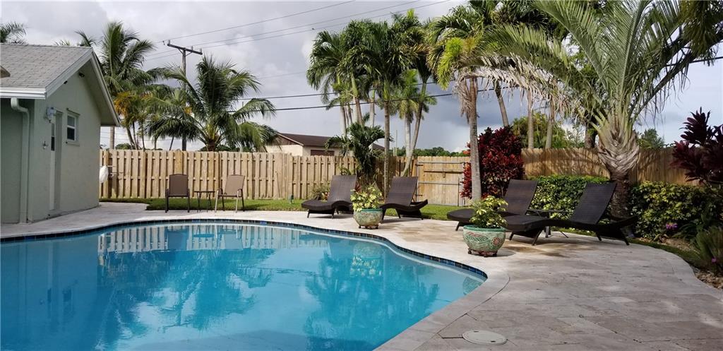 Impeccably upgraded. Beautiful custom designed kitchen cabinetry, undercabinet lighting-soft close drawers/cabinet doors, stainless steel appliances, granite countertops. Crown molding, upgraded baseboards & window casings/door trim throughout. Gorgeous 20” groutless tile. Tastefully selected wood laminate. Newer washer/dryer, & AC units. Captivating nicely landscaped backyard paradise. Large freeform heated pool, seemingly endless Travertine decking/walkways, covered patio with sun shades and a Tiki Hut.