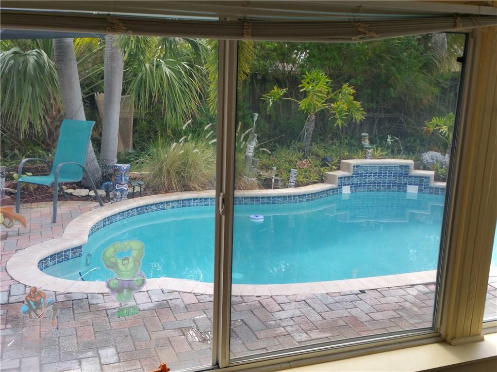Great 4/2 + Huge Florida Room (Den) with/ 180 degree view of Custom Tropical Pool W/ Waterfall, Saltwater Fenced Private Yard, 4 Full Sized legal (builder constructed), Tile Thru-out, Recently Renovated Bathrooms with deep pipe replacement! Kitchen has GE Stainless Steel Appliances, Steam Dishwasher, LG Front Loading Washer & Steam Dryer! Skylight. Roof & Windows in 2006, White framed replacement windows, electric, Deep sprinkler well, Large 5 car driveway, Energy efficient LED Lighting, Walk to schools & Shopping. 3 min to 95, 595, & Turnpike, 10 min to downtown/ Las Olas.