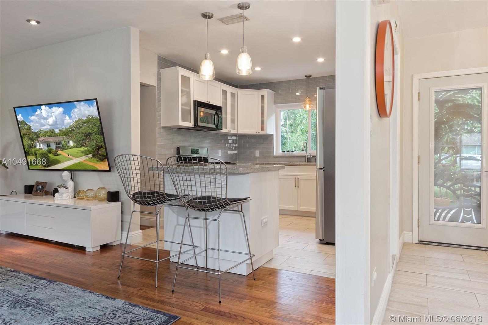 Two bedroom, two bath home in Miami Shores on a quiet street. Attached one car garage, large fenced backyard with room for a pool. Hurricane glass windows and doors, renovated kitchen with new appliances and granite countertop and backsplash. Open floor plan great for entertaining. Good closet space and great storage space in the garage. Wooden deck In the yard. Fruit trees and plenty of room to expand, build a pool or both. Nest security camera, home security system and ring doorbell system. Freshly painted inside and out, Move in condition.