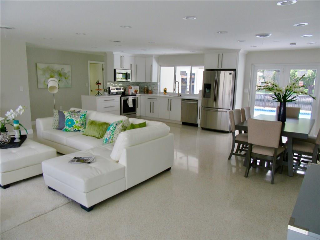 AN ENTERTAINER’S DREAM HOME! OCEAN ACCESS, WATERFRONT, OPEN CONCEPT, BEAUTIFULLY UPDATED SINGLE-STORY HOME. FULLY FENCED FOR PRIVACY-WITH PRIVATE WATER VESSEL READY NEW DOCK. NEW IMPACT WINDOWS PROVIDES NATURAL LIGHT. UPDATED KITCHEN -QUARTZ COUNTER TOPS -NEW SS APPLIANCES. ROOF HAS 7YR WARRANTY. NEW SAMSUNG STEAM W/D. MASTER SUITE FEATURES ENSUITE BATHROOM - HUGE WALK-IN CLOSET. BEAUTIFULLY RESTORED TERRAZO FLOORS THOUGH OUT. DESIGNED FOR INDOOR/OUTDOOR LIVING.