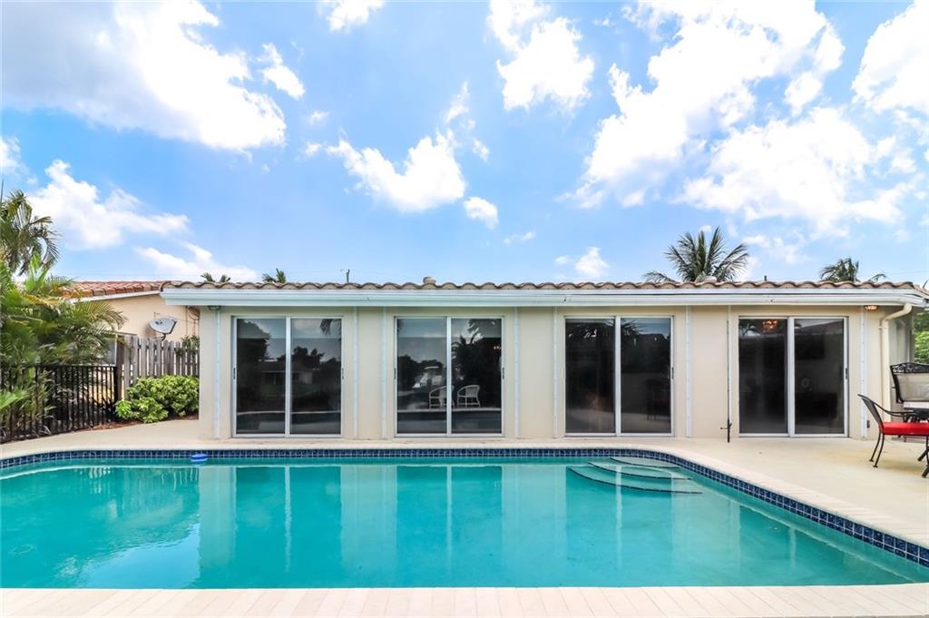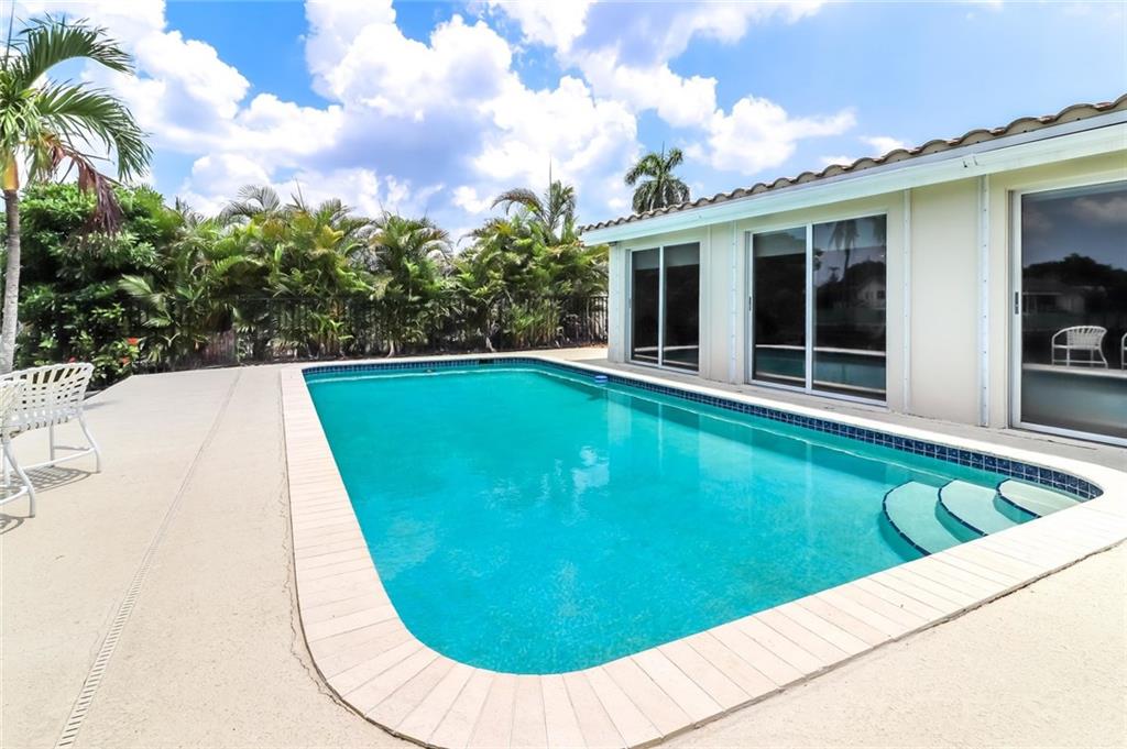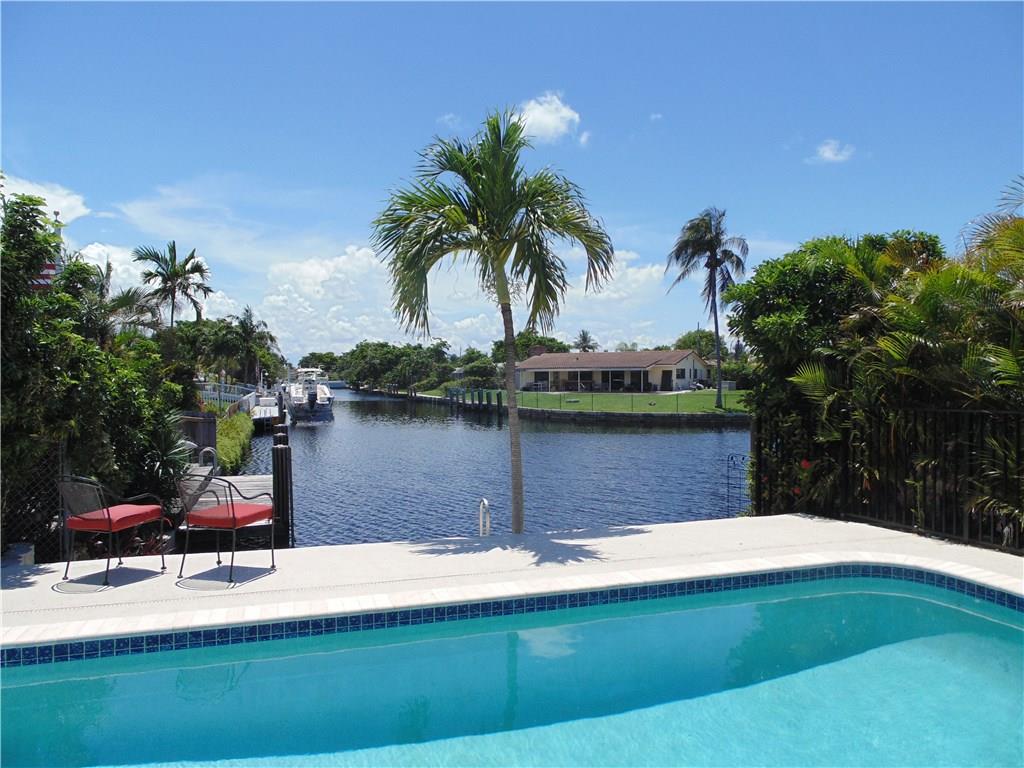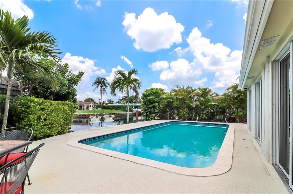 This south Pompano Beach pool home is bright & airy with fabulous water views when you walk in! 4/3 + Florida room 2 car garage- split bedroom plan- new Kenmore Elite appliances- plantation shutters- 25’ water frontage with new 25’ seawall- oversized corner lot- 9,277 SF- well maintained- completely remodeled in 2005 (plumbing,roof, electric, windows)- 2016 A/C- Great schools- McNab Elementary A+, close to top private schools- see attached feature list & survey- ask your agent for it!