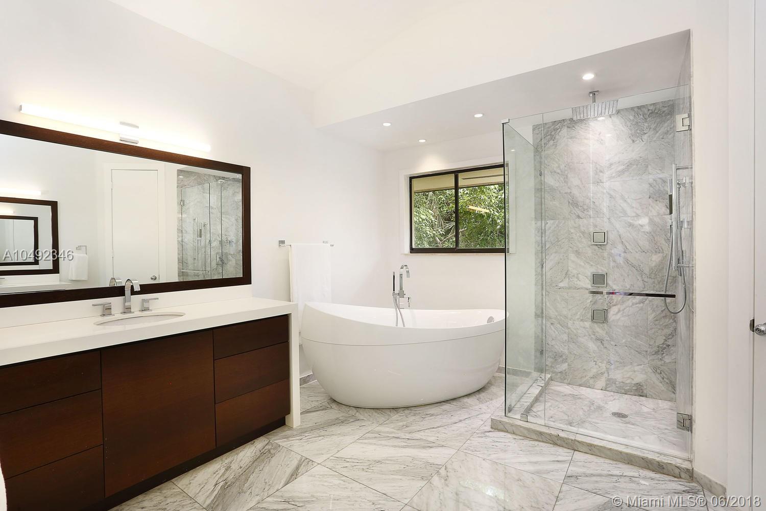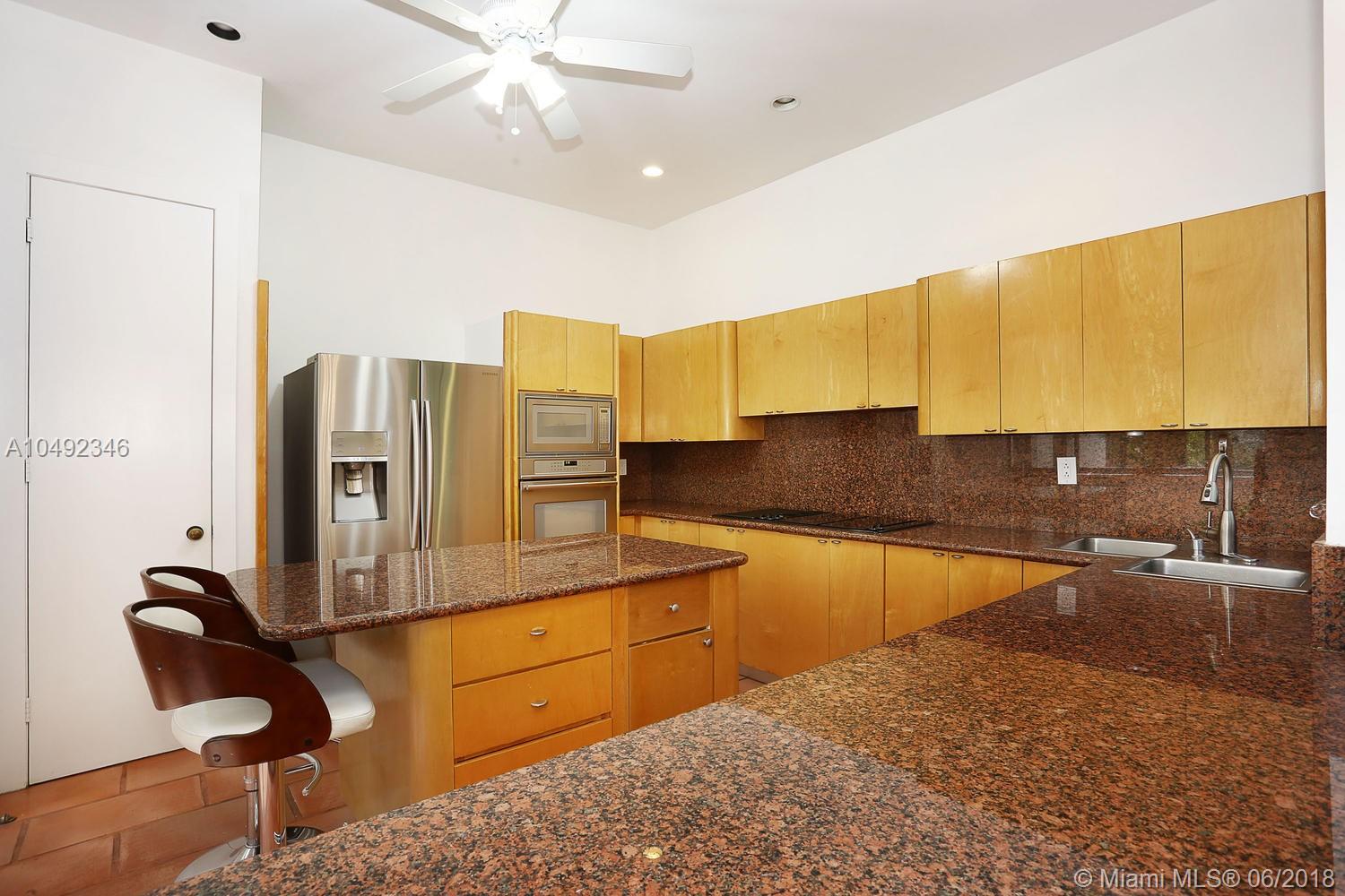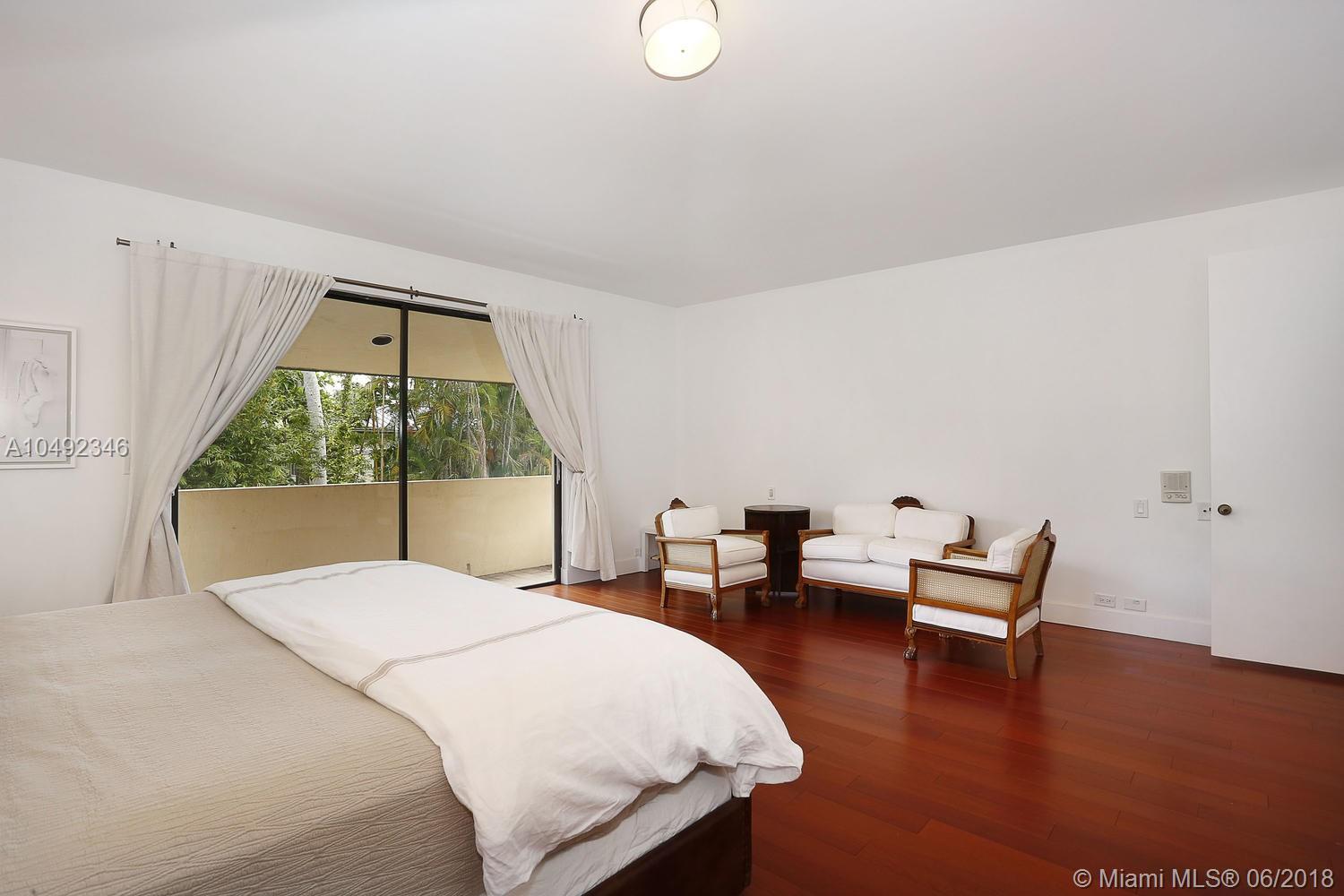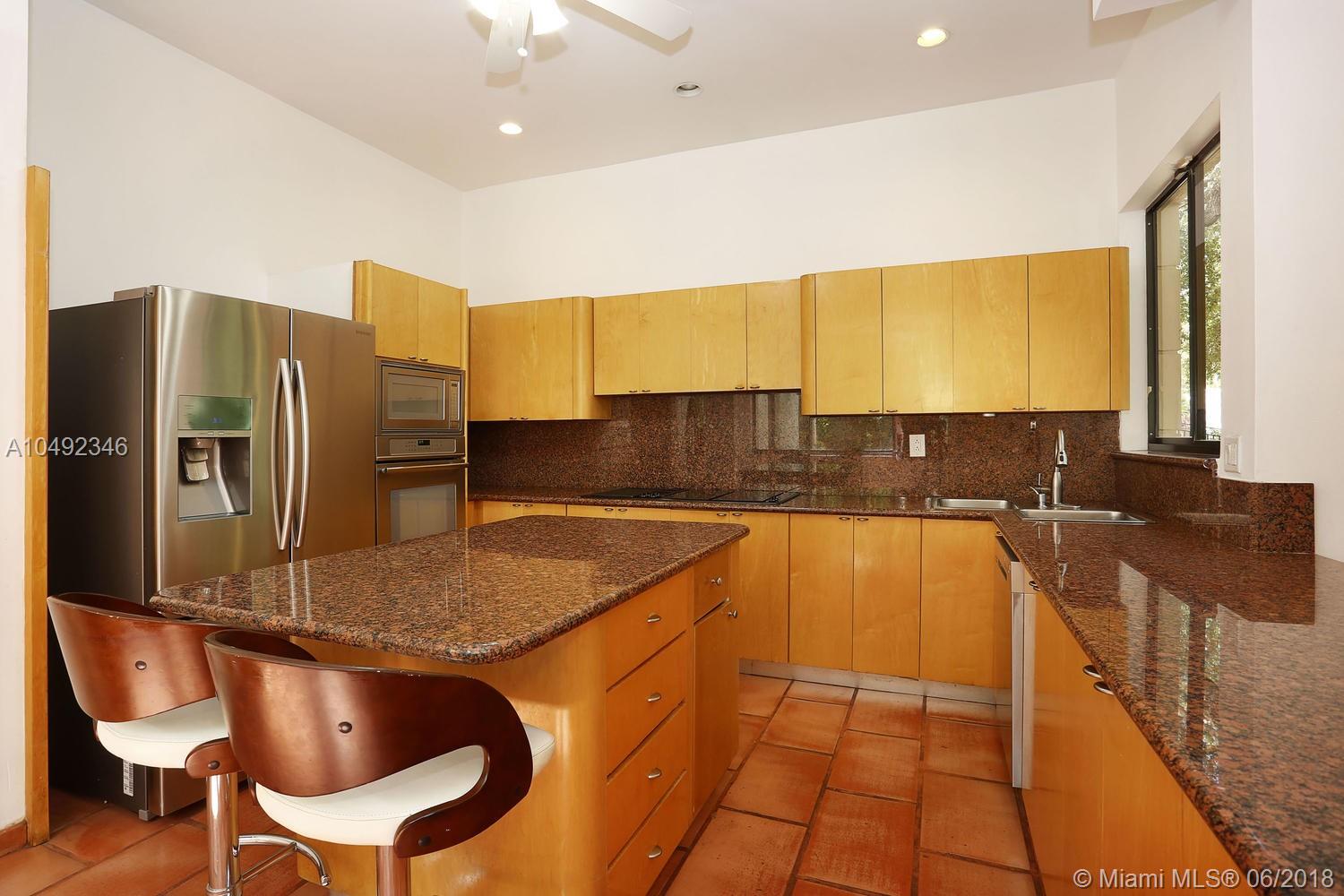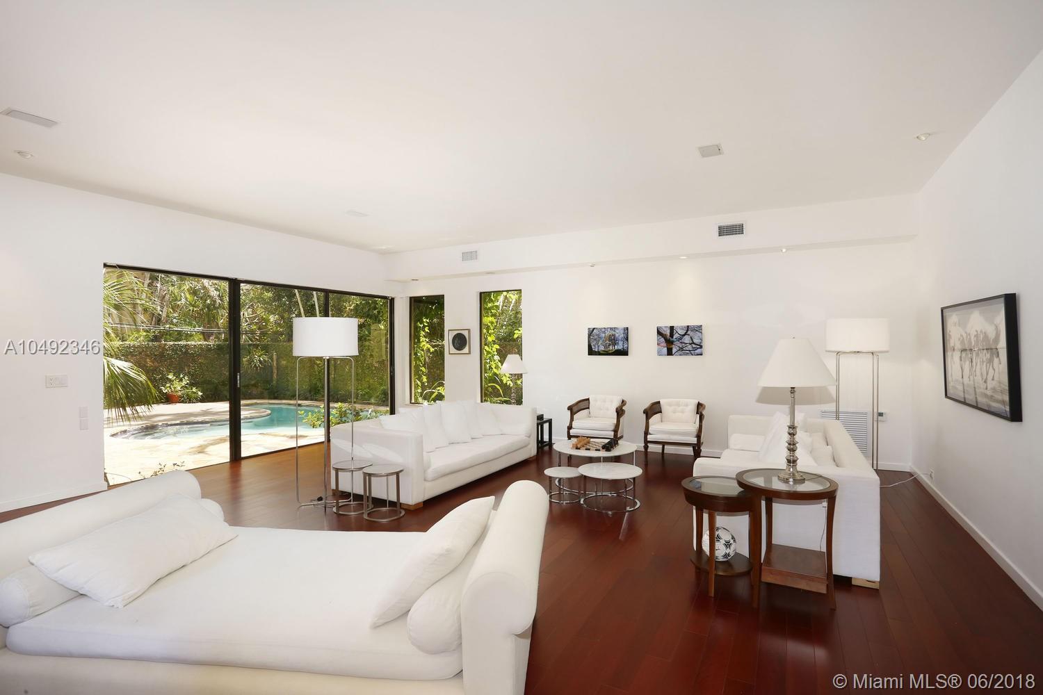 Lovely gated home, set back behind a coral rock wall & privacy hedge in lush South Coconut Grove. Light-filled rooms with high ceilings & stunning new hardwood flooring. Formal living, dining and family room, overlook tropical garden. Open kitchen features wood cabinetry, granite countertops, stainless appliances & adjacent breakfast area. Downstairs guest/housekeepers room. Second floor consists of 3 bedrooms with new en-suite baths and a large master suite with separate sitting area, balcony & new spa-like master bath. Expansive, walled backyard with tropical pool and terrace. New roof. Walk to highly rated private schools and to the Grove village center’s galleries, boutiques, cafes, bayfront parks & marinas. Minutes to downtown, MIA, Coral Gables, Key Biscayne and the Beaches.