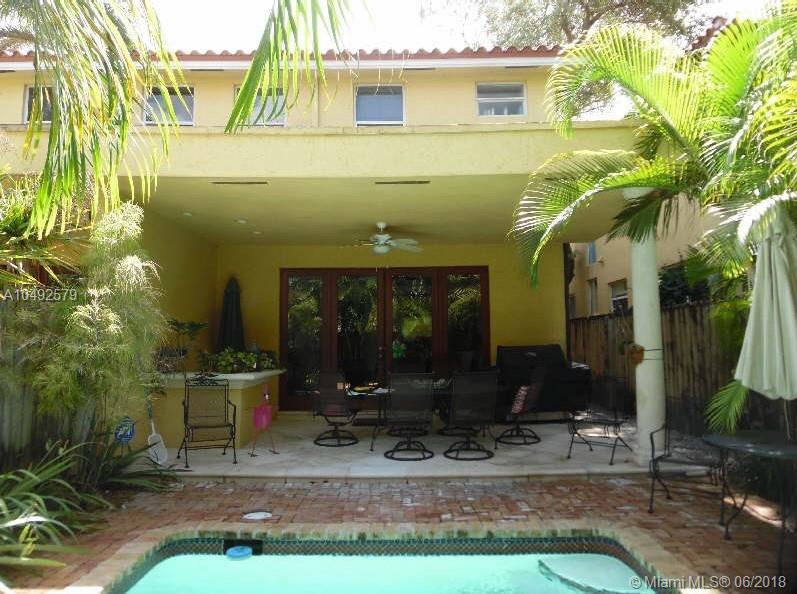 Pool townhome in Coconut Grove on Gifford Lane, who could ask for more! Updated with beautiful porcelain tile that looks like wood floors (beautiful). Updated kitchen with white cabinets, gas stove, sub zero refrigerator, ice maker and granite counters. Pool/patio enhanced with orchid laced landscaping, fenced patio area with barbeque and sprinkler system. Wood floors upstairs and very spacious master bedroom.