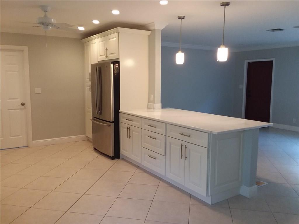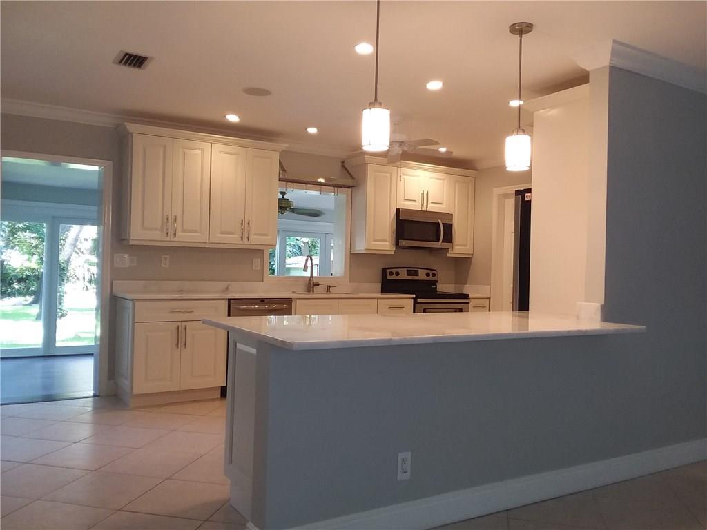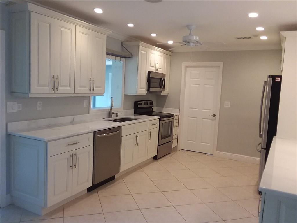 Home sits on a large .4 acre fenced lot and has a 8'x25' boat/RV parking pad. The back yard has a custom pizza brick oven and room for a pool or outbuilding. Inside has been freshly painted and has tile thru main living areas and wood/laminate floors in bedrooms and den. All impact windows and doors. Kitchen has SS appliances, new Jarlin cabinetry and quartz counters and recessed, pendant and under cabinet lighting. Laundry/mud room has new washer/dryer, extra cabinetry and new elec svc panel.