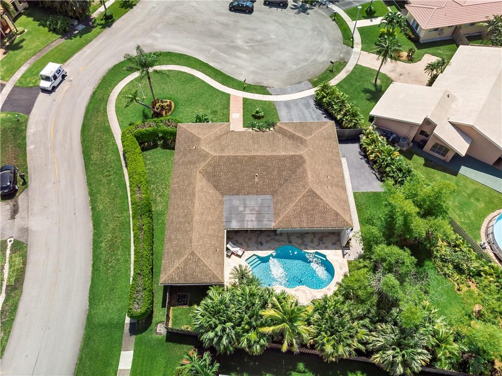 Spacious, 3/2.5 fantastic pool home, with huge manicured lushly landscaped 14,000sf yard"a true park setting" no-thru street, quiet corner cul-de-sac mins from everything.White tile in main living areas, white kitchen/baths. NEW: electric panel, pool pump (2018);hurricane shutters, water heater,Samsung washer& dryer,gutters (2017);Euro tile patio decking& dishwasher(2015);pool new diamond brt, garage door& opener,air conditioner,fence(2013);new roof (2008).Won't last!!Don't wait