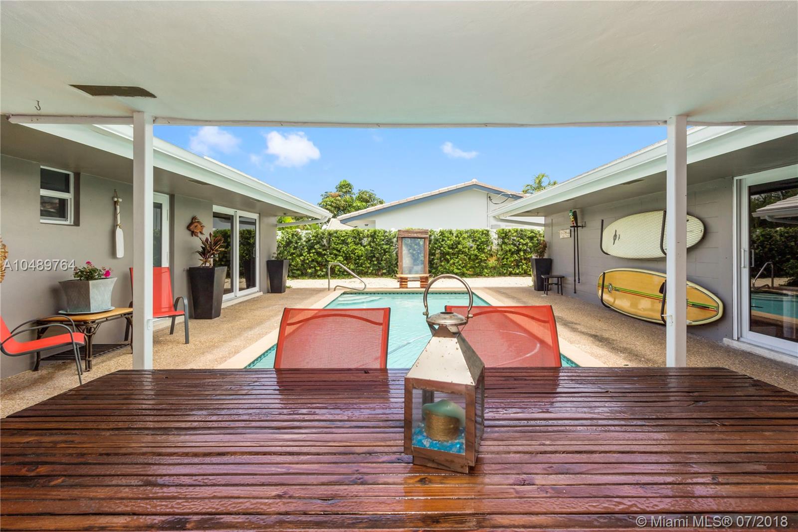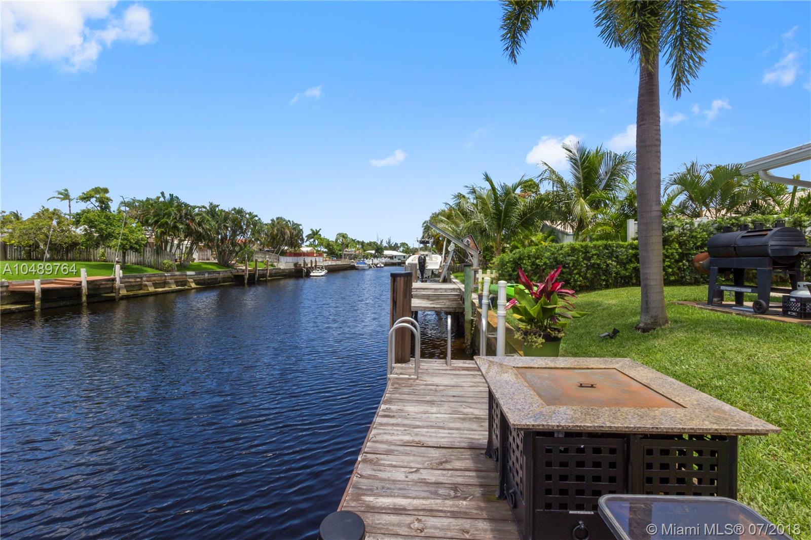 The best Fort Lauderdale waterfront opportunity on the market! Spectacular Coral Ridge Isles 4/2, Bright, Clean & Completely Remodeled Home, including New Hurricane Impact Windows / Doors & Garage. Porcelain Plank Wood-Look Flooring throughout, Gorgeous Kitchen w/ New Cabinets, Butcher Block Counters & Farmhouse Sink, all new LG appliances, including Washer / Dryer, Newer AC system & Water Heater, Spectacular Top of the Line Outdoor Kitchen / BBQ, outdoor Security Camera, upgraded Electric Panels, new LED Lighting. Courtyard Style Home - Perfect to Watch the Kids from almost every room, or Entertaining. 75 Feet on Deep Water, Ocean Access, Boat to the Restaurants. Fantastic Floranada School District, but also close to Pine Crest School & the Beach.