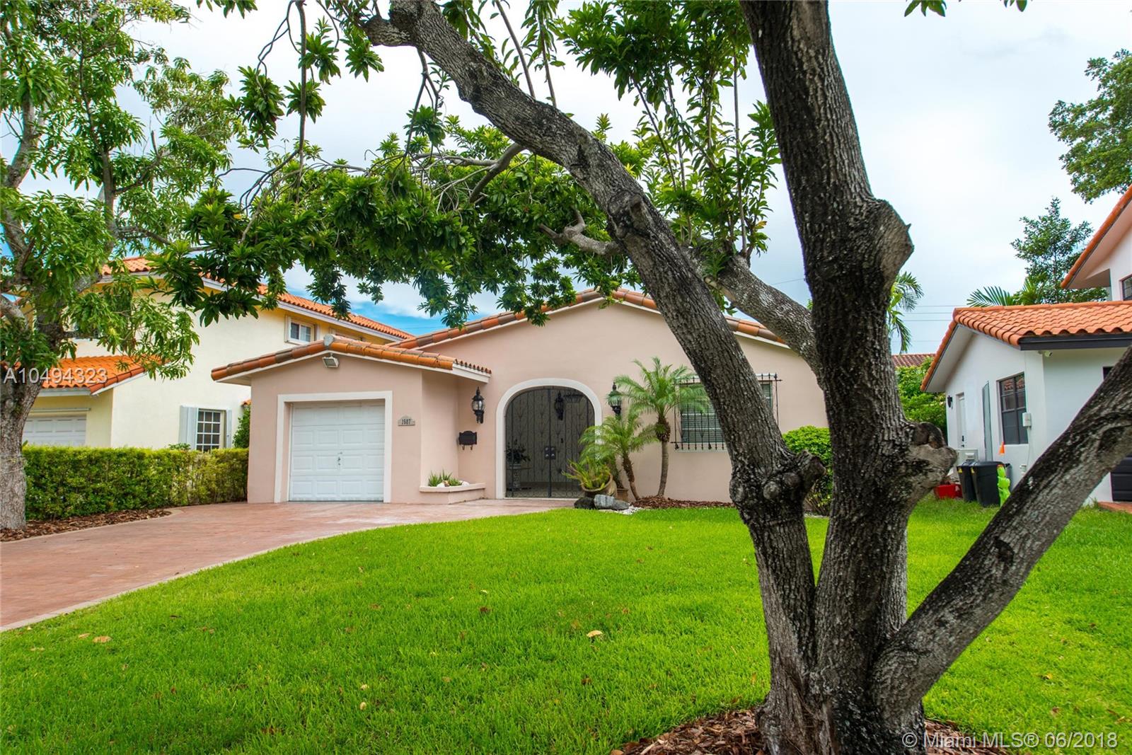 Lovely well-maintained home with a gated atrium entrance. Located on a quiet tree-lined street, close to Coral Gables shopping & dining, The Biltmore Hotel & Golf Club & University of Miami. Renovated 3BR/ 3BA with light-filled living spaces including formal living, dining & family room. Custom kitchen with adjacent breakfast area, features wood cabinetry, quartz countertops & recently replaced stainless appliances. Split bedroom plan ( each with en-suite bath ) including large master with ample closet space. 1 car garage. Minutes to downtown, MIA and the Beaches.