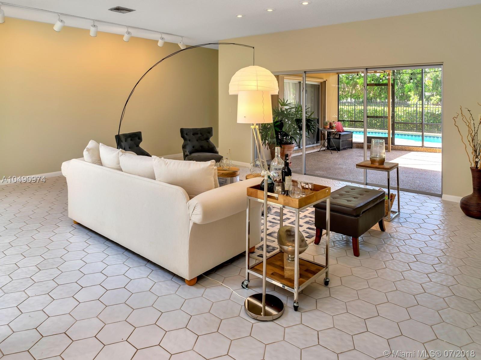 Delight yourself with this charming and spacious 4 bedrooms, 3 baths, 2 car garage, salted pool and water front home in Weston. One of the most sought after 'A' rated schools district in South Florida. An entertainer's dream inside and out, boasting a bright, airy and open floor plan. 2 Newer AC Units and Shutters through out. This home also features a Sauna, a built in barbecue grill, a screened patio and an enclosed glass atrium for those plant lovers! Canal fed Sprinkler system. NO HOA! With only $ 285 a year, you get access to Bonaventure tennis courts, bowling alley, pools and theater year round!