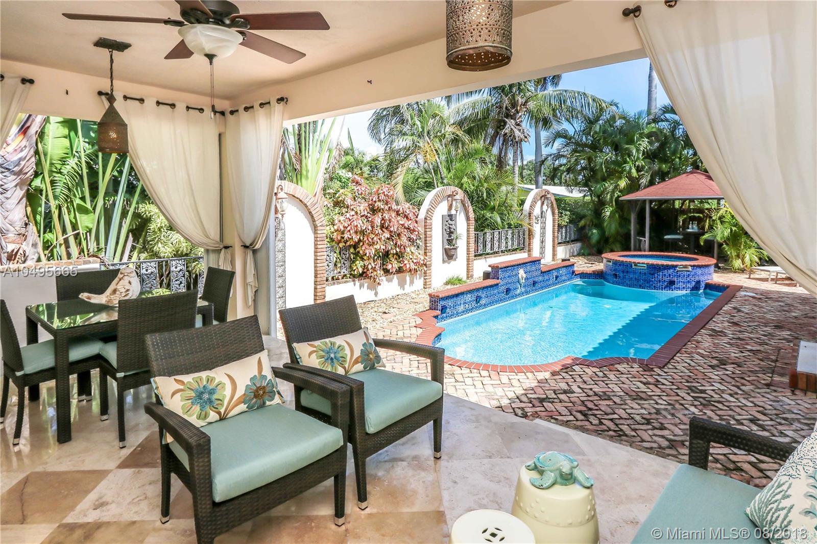 Enjoy all the amenities of Hollywood Beach and Southlake in this completely upgraded home with attention to architectural details including new barrel tile roof with 10 year warranty installed June 2018. Zero grout travertine throughout, two master suites. Master Bath has dual sinks, walk in shower features Waterfall and Body Jets, large jetted tub and bidet. Large gourmet kitchen with all updated appliances, wine cooler, double wall oven, open floor plan, great for entertaining. Home sits on two streets , with gated entrance to the two car garage on Van Buren St. The backyard features a private oasis including a covered patio, Salt water pool with waterfalls, light features, heated spa and gazebo. Security alarm and camera system. Short distance to Hollywood Beach