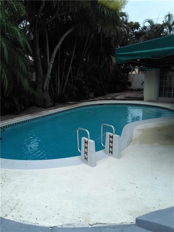 Beautiful 2/2 home in the highly sought after family neighborhood PALM AIRE VILLAGE. It is located on a quiet culdesac, with a 1 car garage, a double drive and a pool in the gated backyard. Presently used as a 2 bedroom but can easily be used as a 3 bedroom. A large dining area, family room, study/den/office area on the opposite side of the bedrooms and baths gives this home a smart use of space and an excellent floor plan. The Hurricane tested accordion shutters on the windows and great roof are a plus.