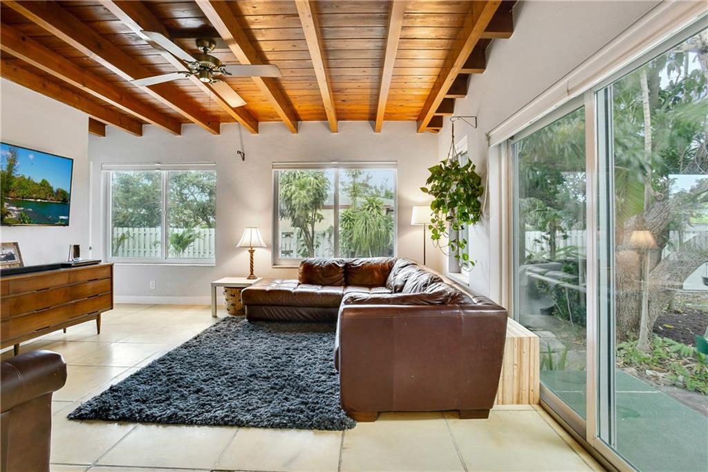 Charmingly renovated Mid-Century Architecture - Double Lot with 3 Bedrooms/1 car garage. Has exposed Wood Ceiling & beams, oversized Impact Windows & Doors, Oak Hardwood Flooring, beveled Archways, closed in front Porch & shaded Patio. Home surrounded by expansive 1/3 acre fully fenced-in grounds with mature fruit trees and massive staghorn fern. Easy access to Golden Glades Interchange, I95, 826 & Turnpike -- only 3.8 miles to Beach via 163rd! Lovingly maintained, tastefully updated, one-of-a-kind, home!