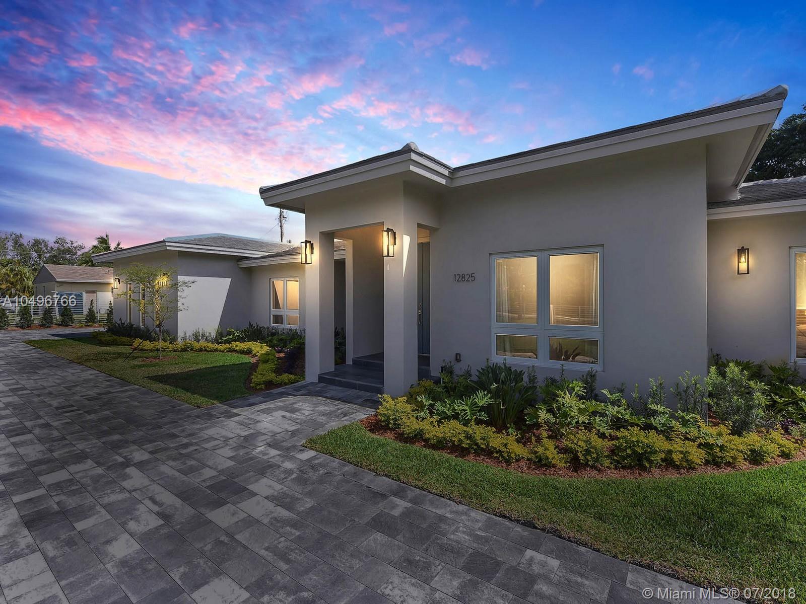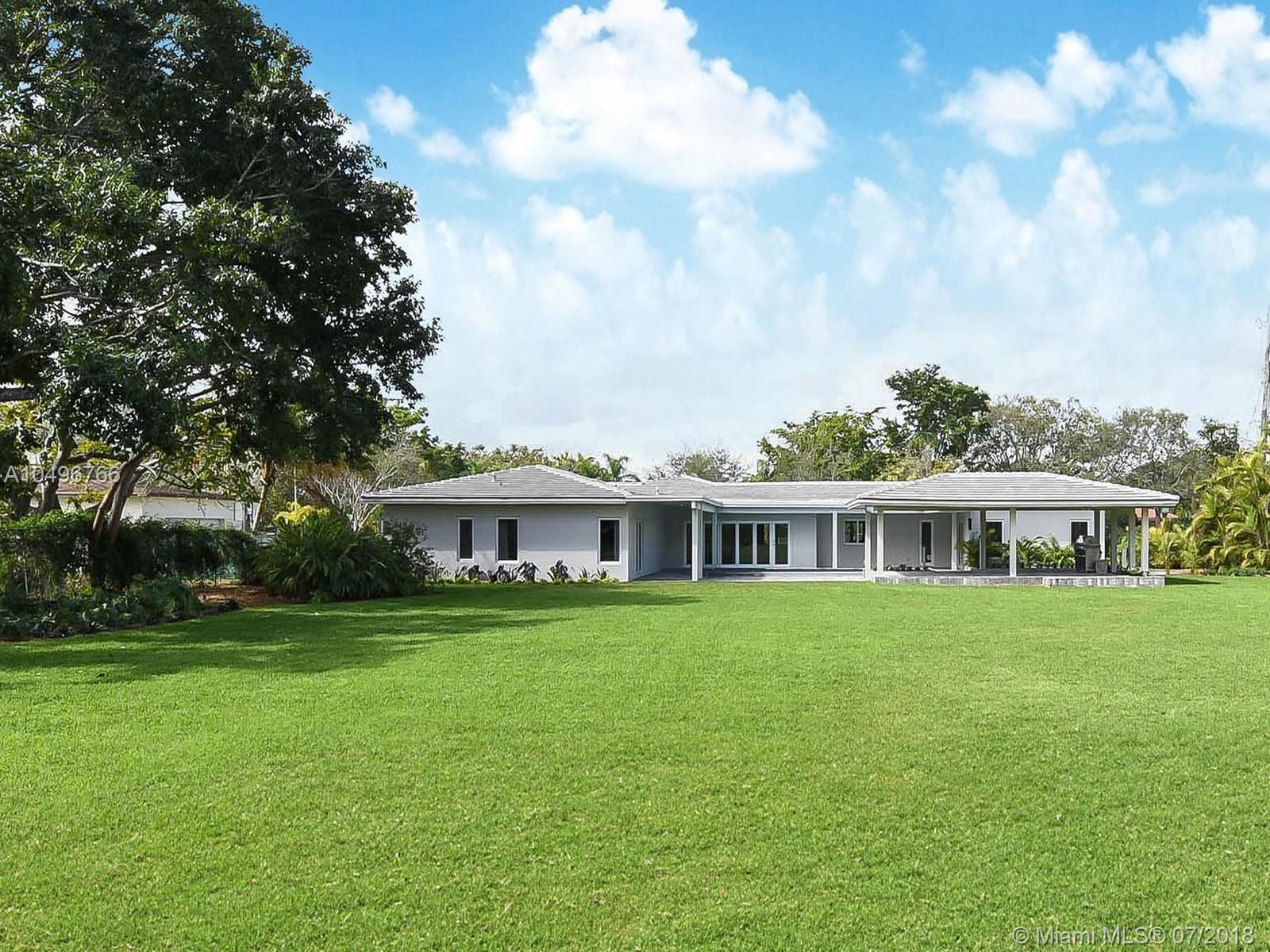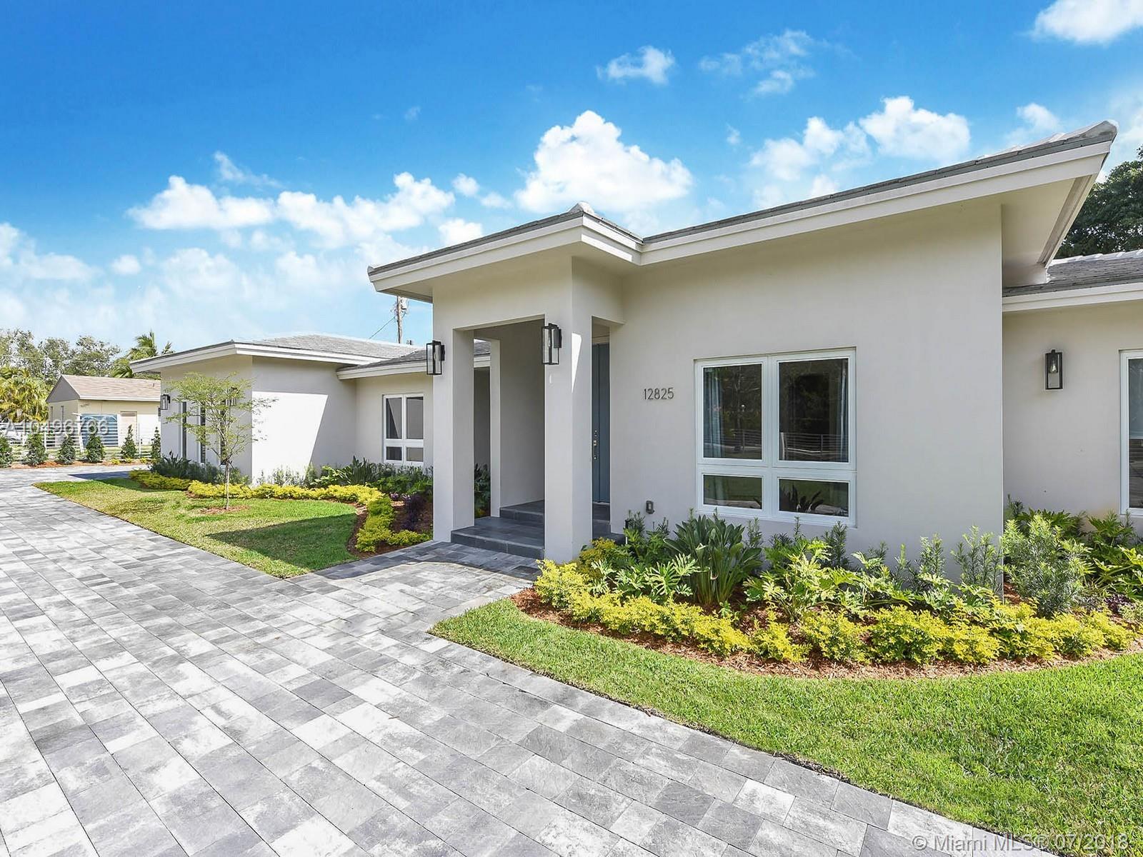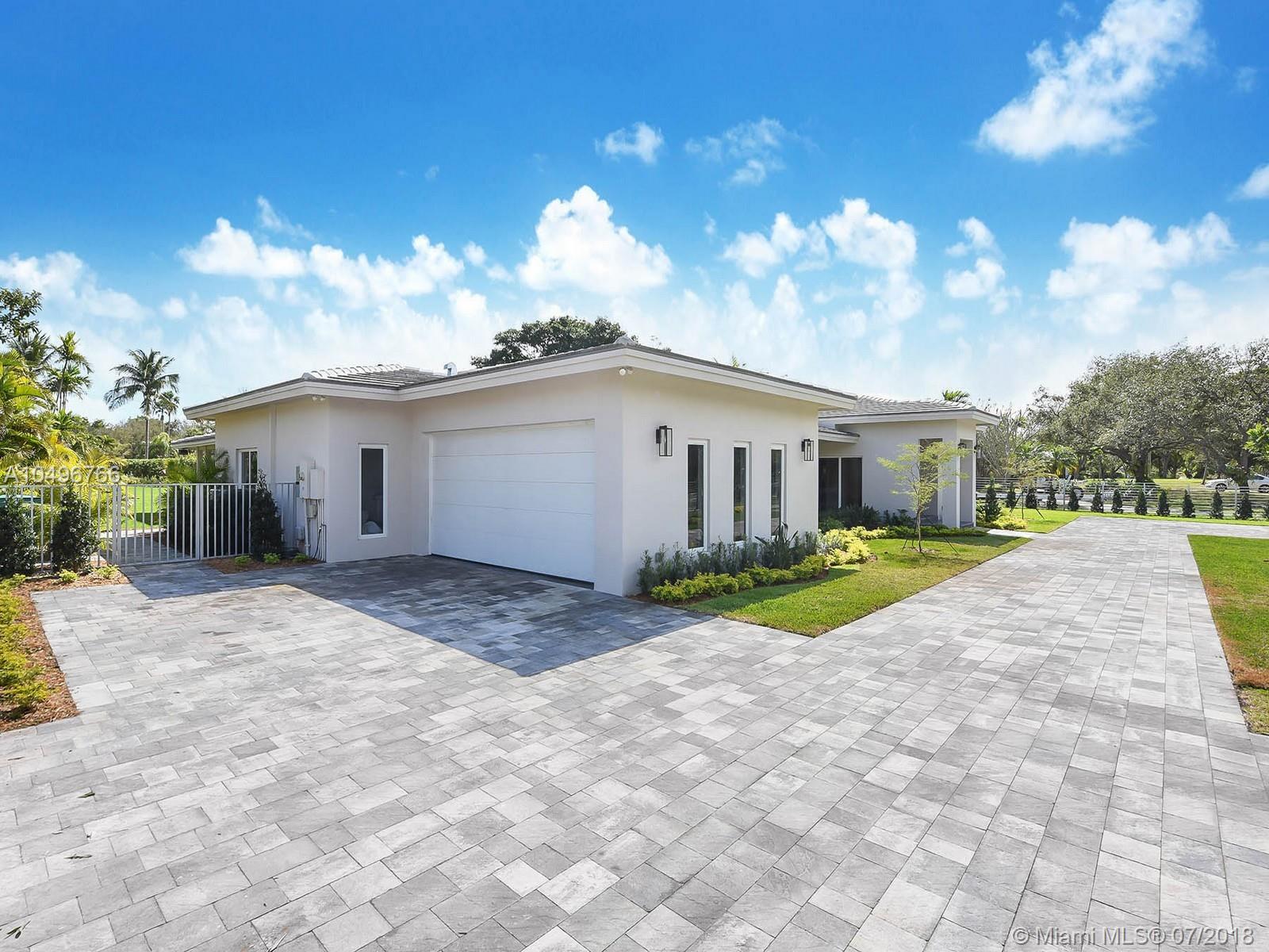 The perfect brand new one-story residence on almost an acre of tropical land in Pinecrest has just been completed and ready for your family to move right in! This five bedroom contemporary home has been completely rebuilt with the finest in craftsmanship, luxurious finishes and high end fixtures. Stunning Nobilia cabinetry designed by the German Kitchen Center with Dakota quartz countertops, Bosh and KitchenAid appliances. Totally gated with an attached two car garage with vaulted ceilings. Pool freshly refinished with new mod pavers looks out over the oversized landscaped yard. Built for their own family the seller just finished construction and is now relocating overseas.