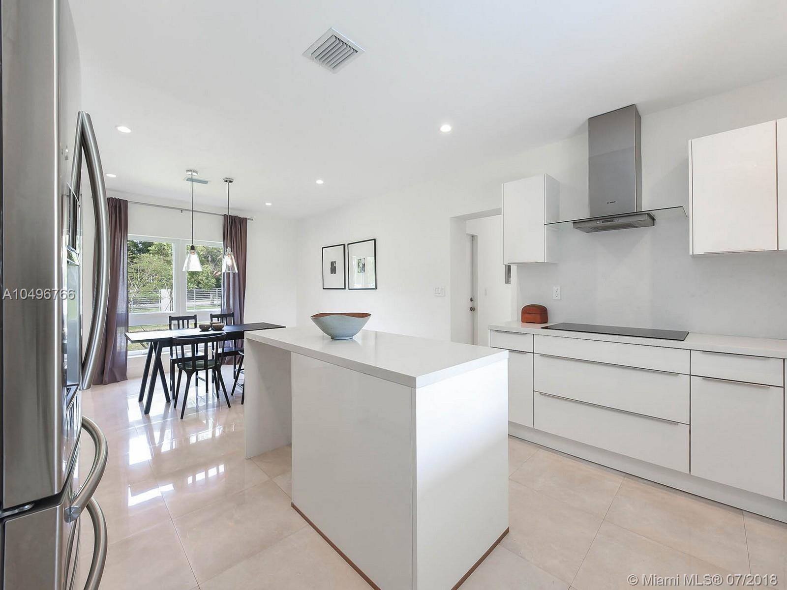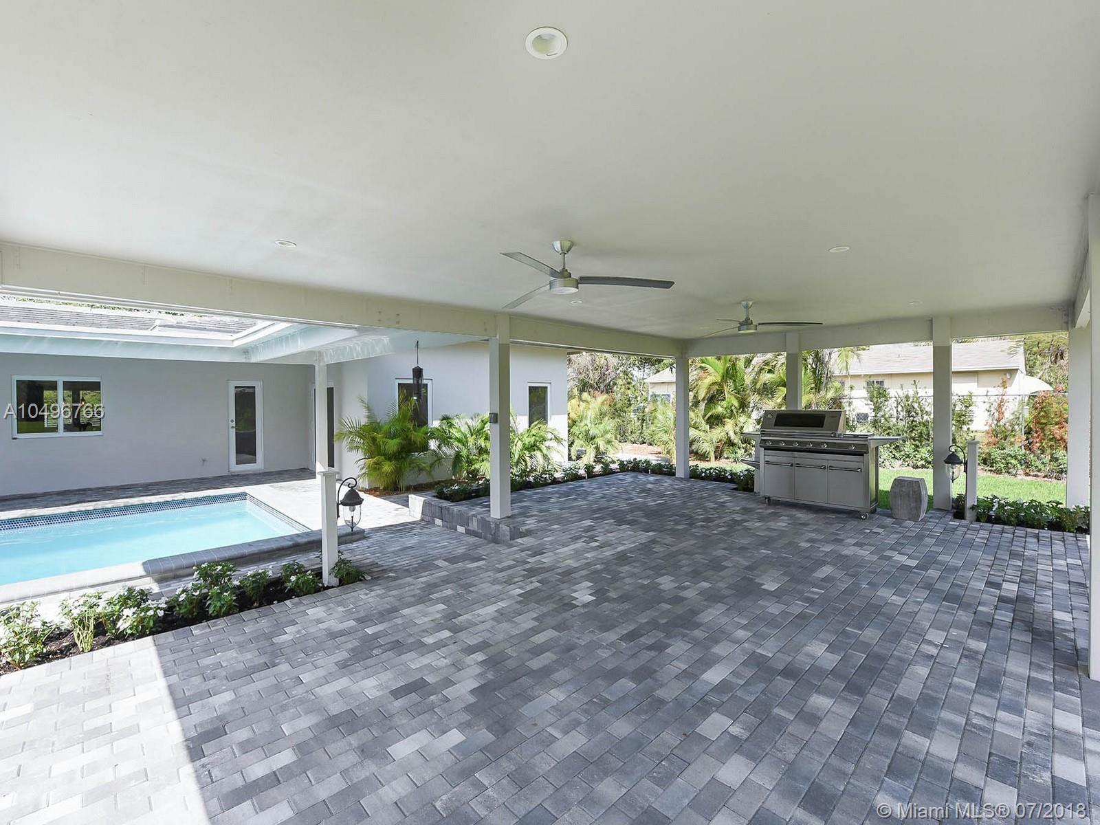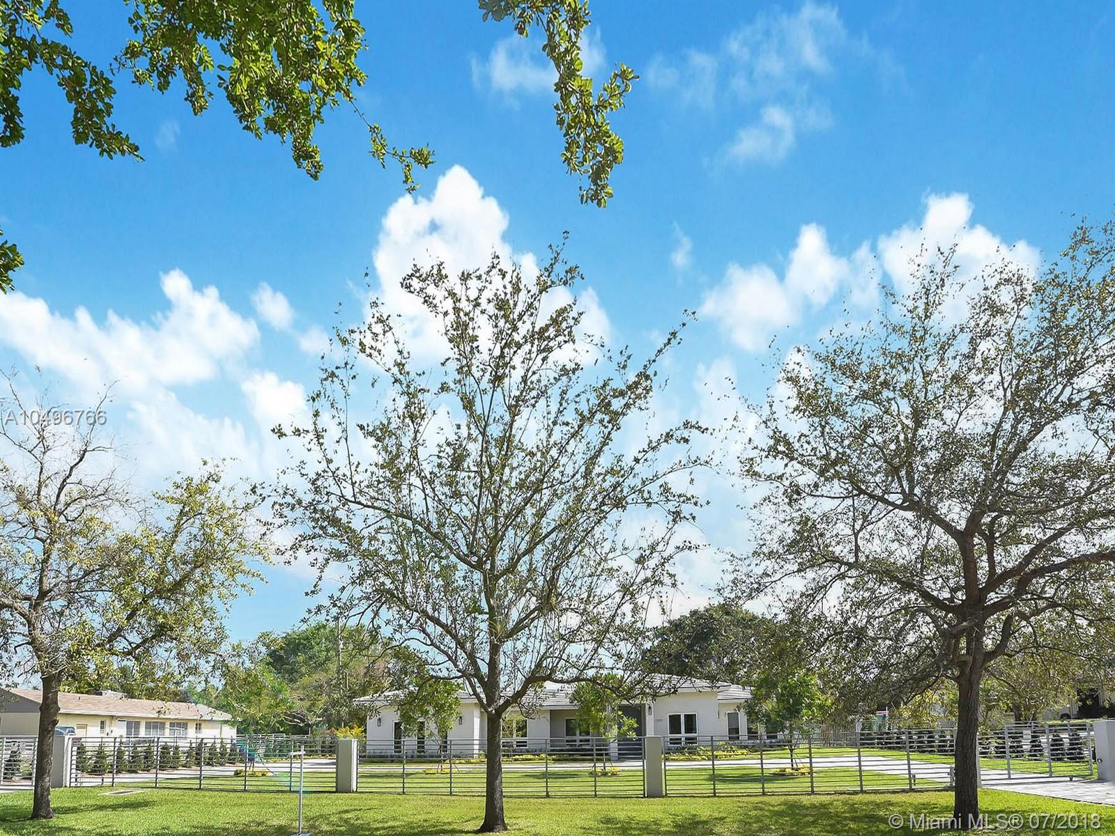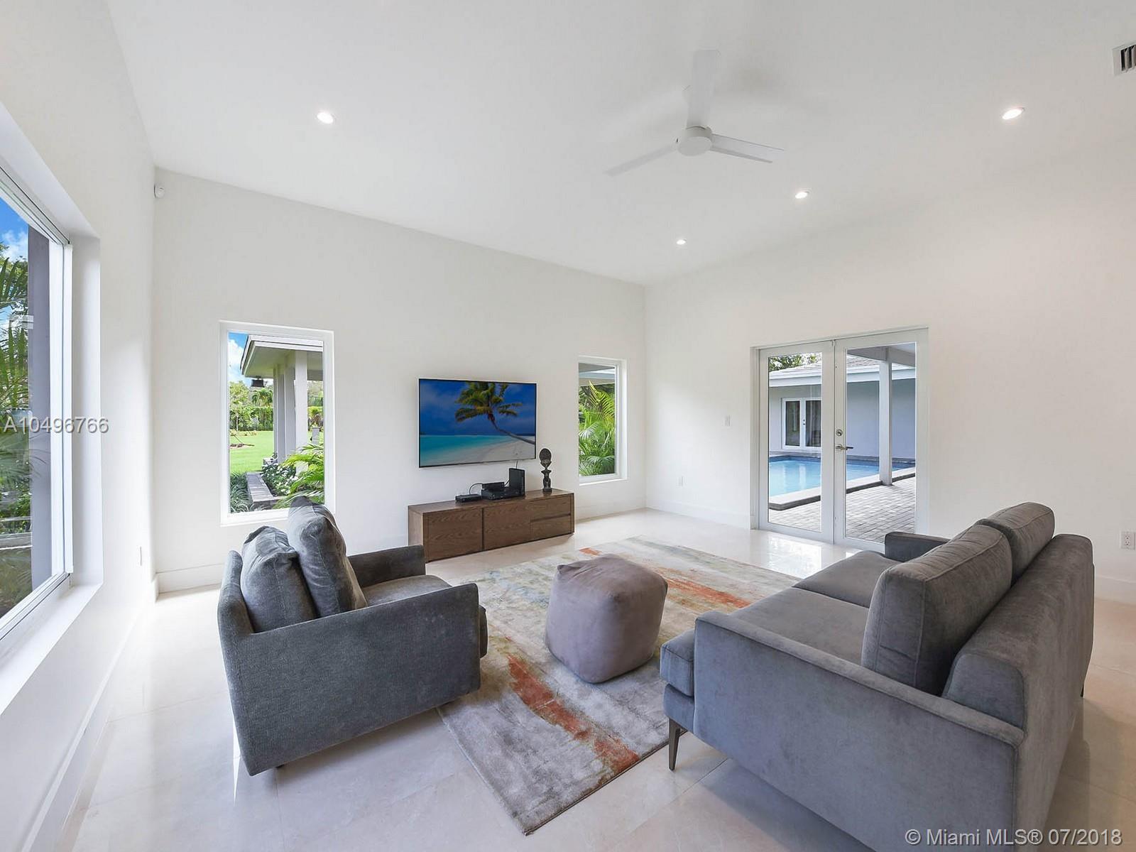 The perfect brand new one-story residence on almost an acre of tropical land in Pinecrest has just been completed and ready for your family to move right in! This five bedroom contemporary home has been completely rebuilt with the finest in craftsmanship, luxurious finishes and high end fixtures. Stunning Nobilia cabinetry designed by the German Kitchen Center with Dakota quartz countertops, Bosh and KitchenAid appliances. Totally gated with an attached two car garage with vaulted ceilings. Pool freshly refinished with new mod pavers looks out over the oversized landscaped yard. Built for their own family the seller just finished construction and is now relocating overseas.