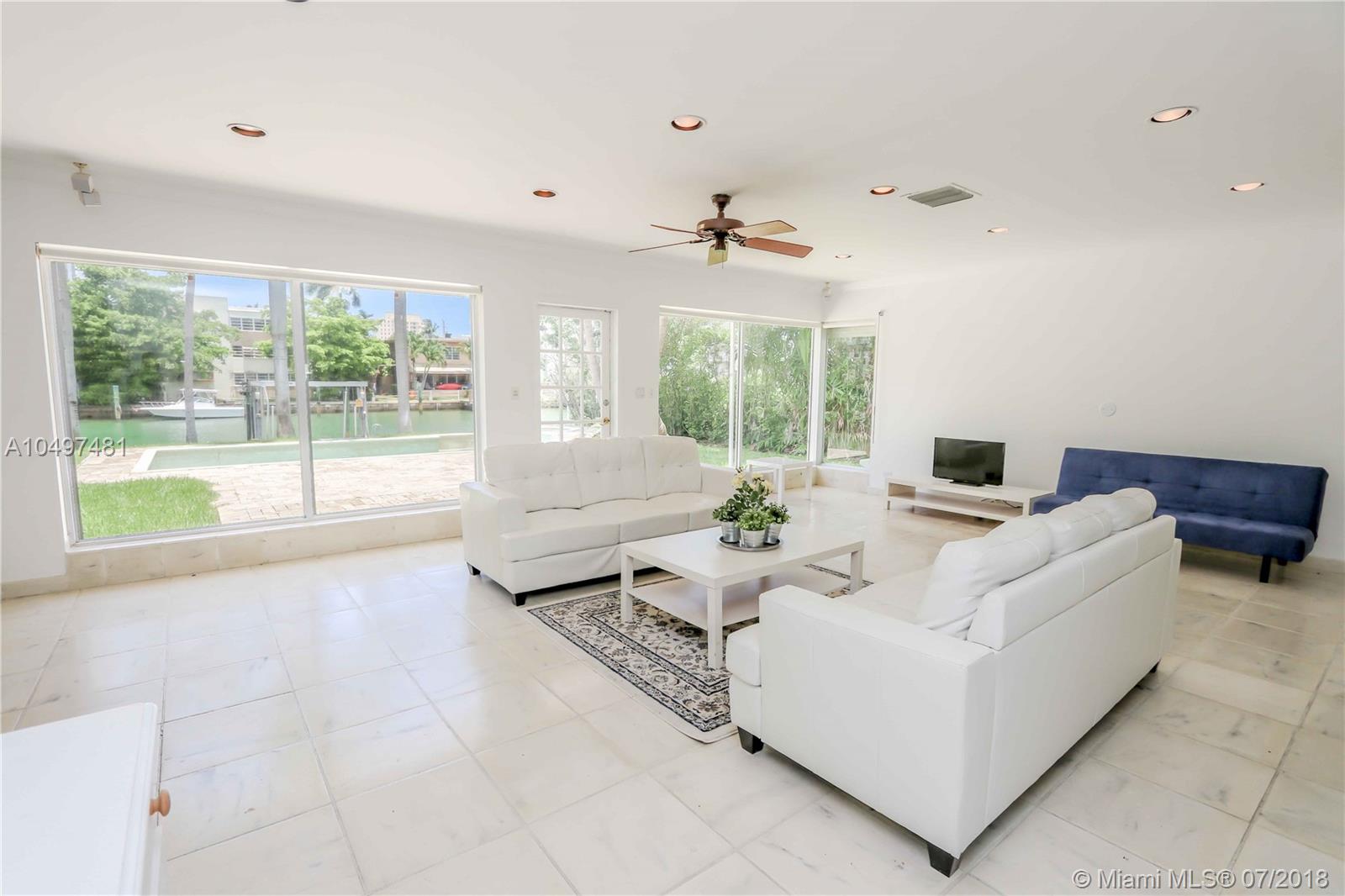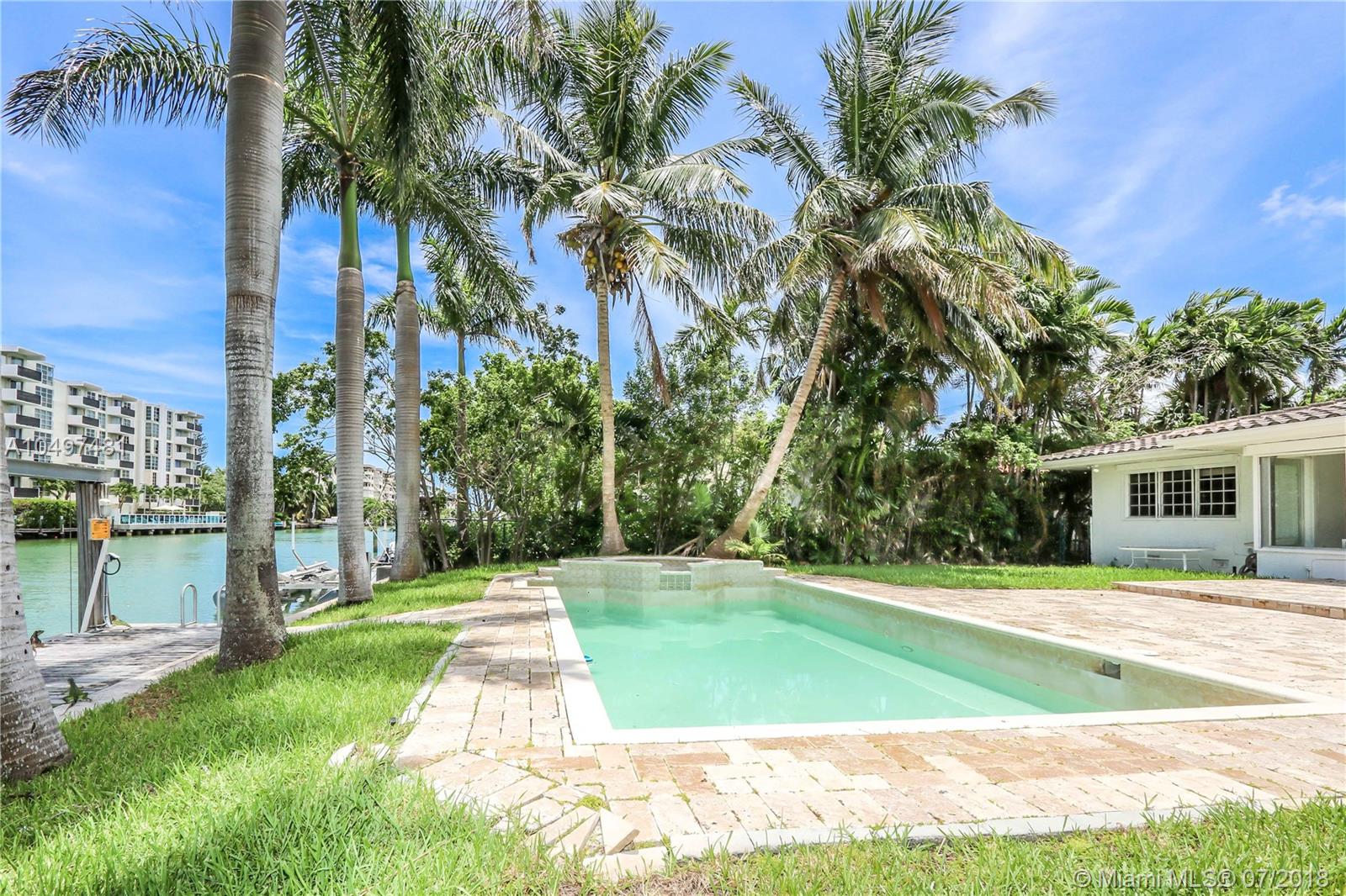 Located in the prestigious Bay Harbor Islands, this spacious open floor plan waterfront home features 75 feet of water frontage. 3 bedrooms 2 Bathrooms. Plenty of natural lighting. Beautiful backyard oasis featuring sparkling pool with plenty of space for entertaining. Deeded dock with Boat lift. Walking distance to beach, Bay Harbor mall, and great restaurants.