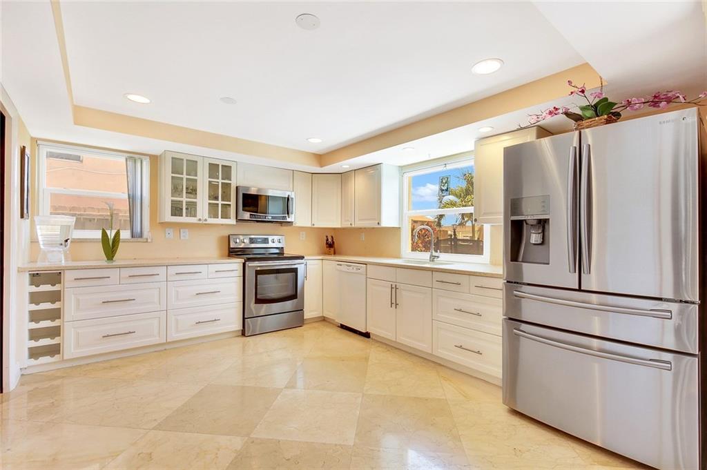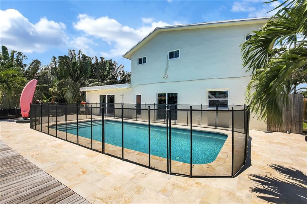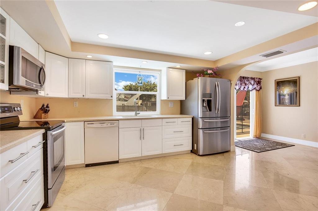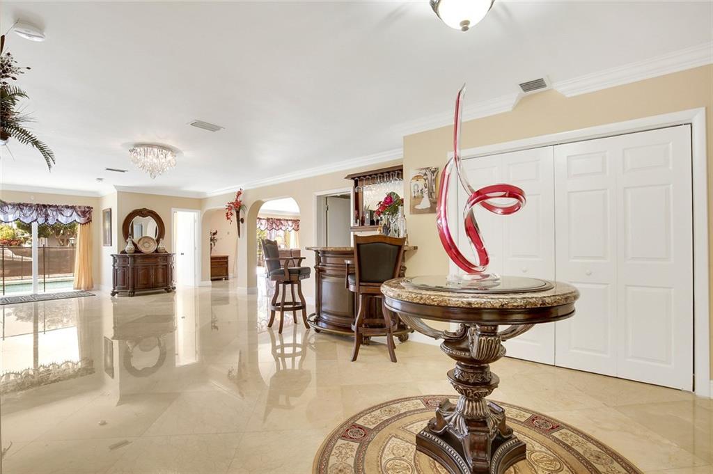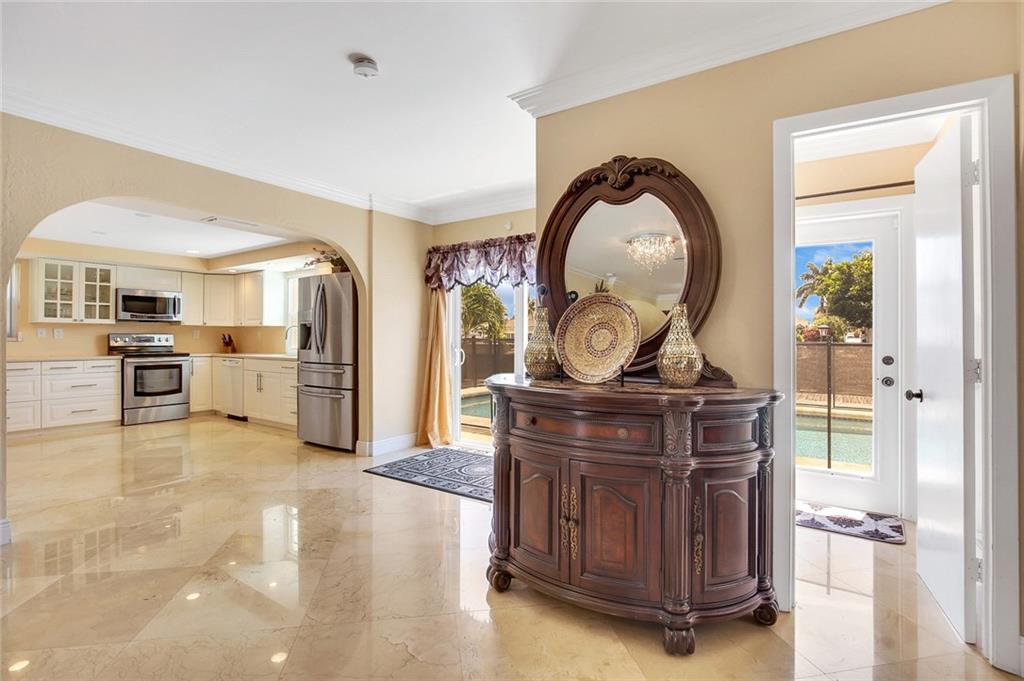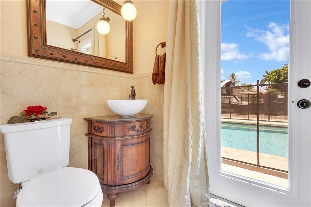 Substantially remodeled two story waterfront pool home. Delightful use of marble, granite and hard wood floors grace this home to please everyone. Hurricane windows and doors, two newer ACs, mahogany double door entrance and the wood burning fireplace in the living room make this an easy home to love.The tropical pool area is the perfect place to relax after boating. A 14,000 lb. boat lift is included on the new 60 foot dock. Marble tile is used in both the front and the deck area of this lovely home.