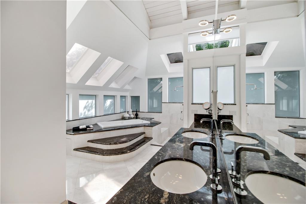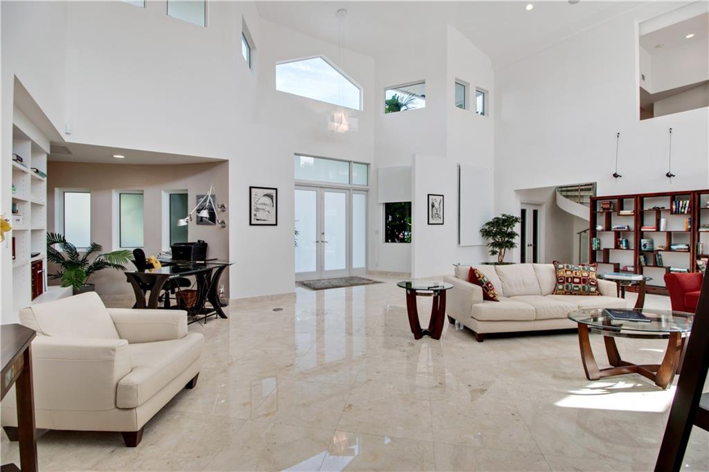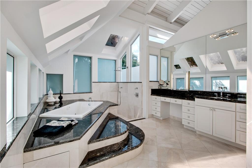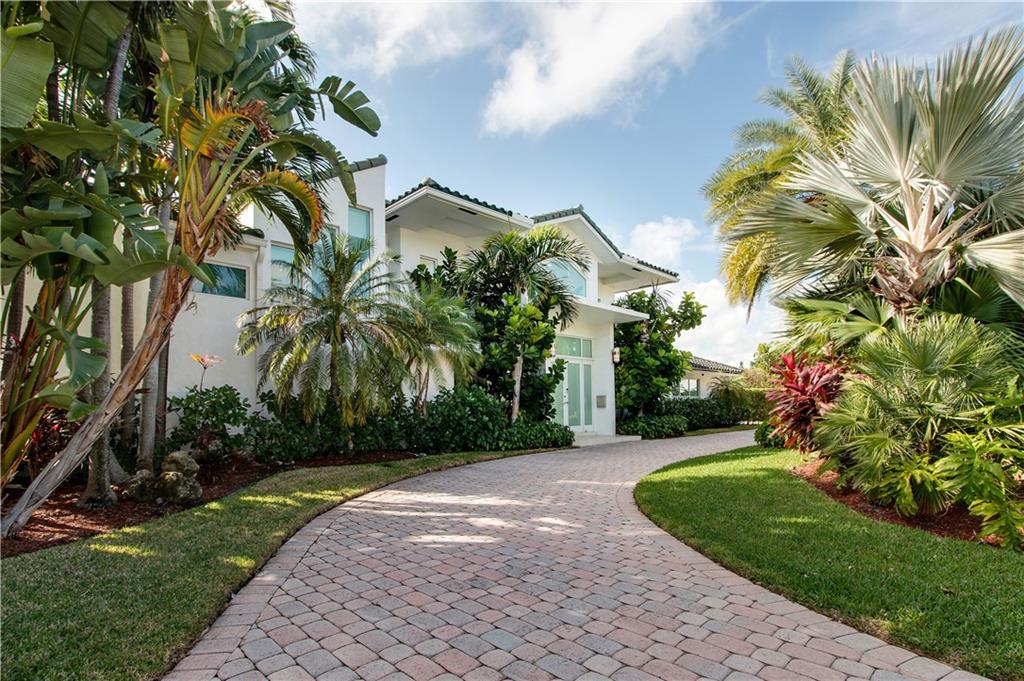 Private oasis situated on an oversized lot & framed by lush landscaping. Contemporary design, open floor plan, soaring ceilings, large great room & walls of glass. Conducive to today's life style with a gourmet kitchen opening to the family room, 1st floor master suite & multiple doorways blend indoor & outdoor living spaces. Culinary summer kitchen, full home generator and covered loggia overlooks the waterway which is ideal for boating. No fixed bridges to the Intracoastal waterway and Atlantic Ocean. Sq ft from BCPA.