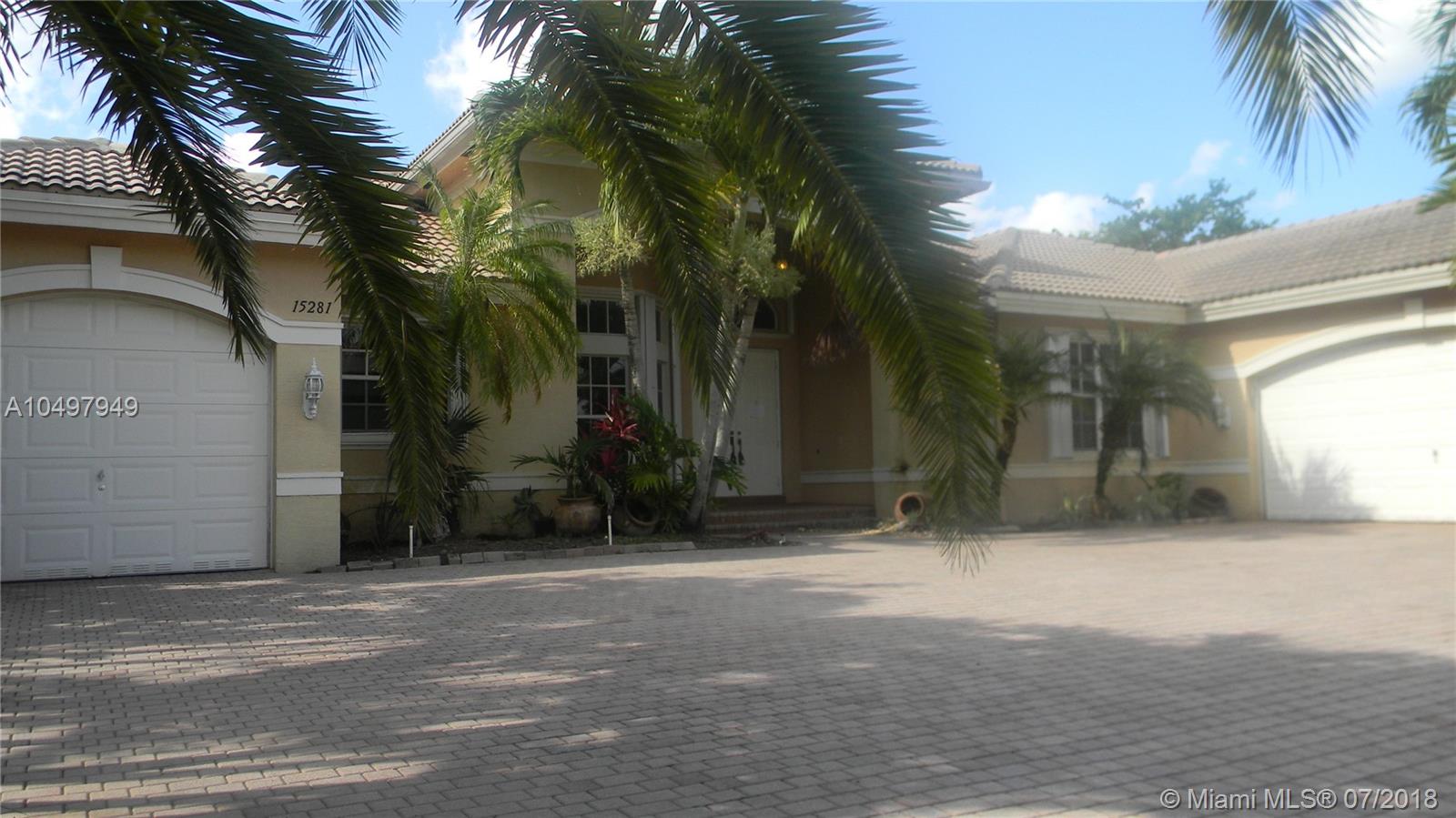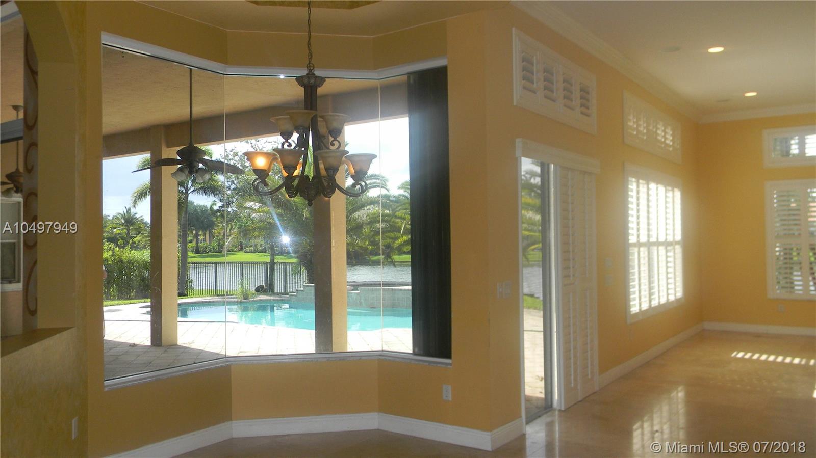 Outstanding opportunity to own a gorgeous lakefront house in the highly desirable Riverstone community in Davie, Fl. This home with 6 bedrooms, 4 bath & 3 car garage one-story & has upgrades galore and features tile floors throughout, real wood kitchen cabinets with midnight black granite counter tops, stainless still appliances, high ceilings, master bathrooms, customized walk-in closets in master bedroom, beautiful pool and pool deck overlooking the lake that makes a perfect setting to entertain family and friends. Close to I-75, beautiful equestrian parks, shopping malls and restaurants.