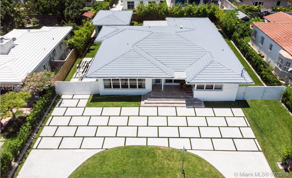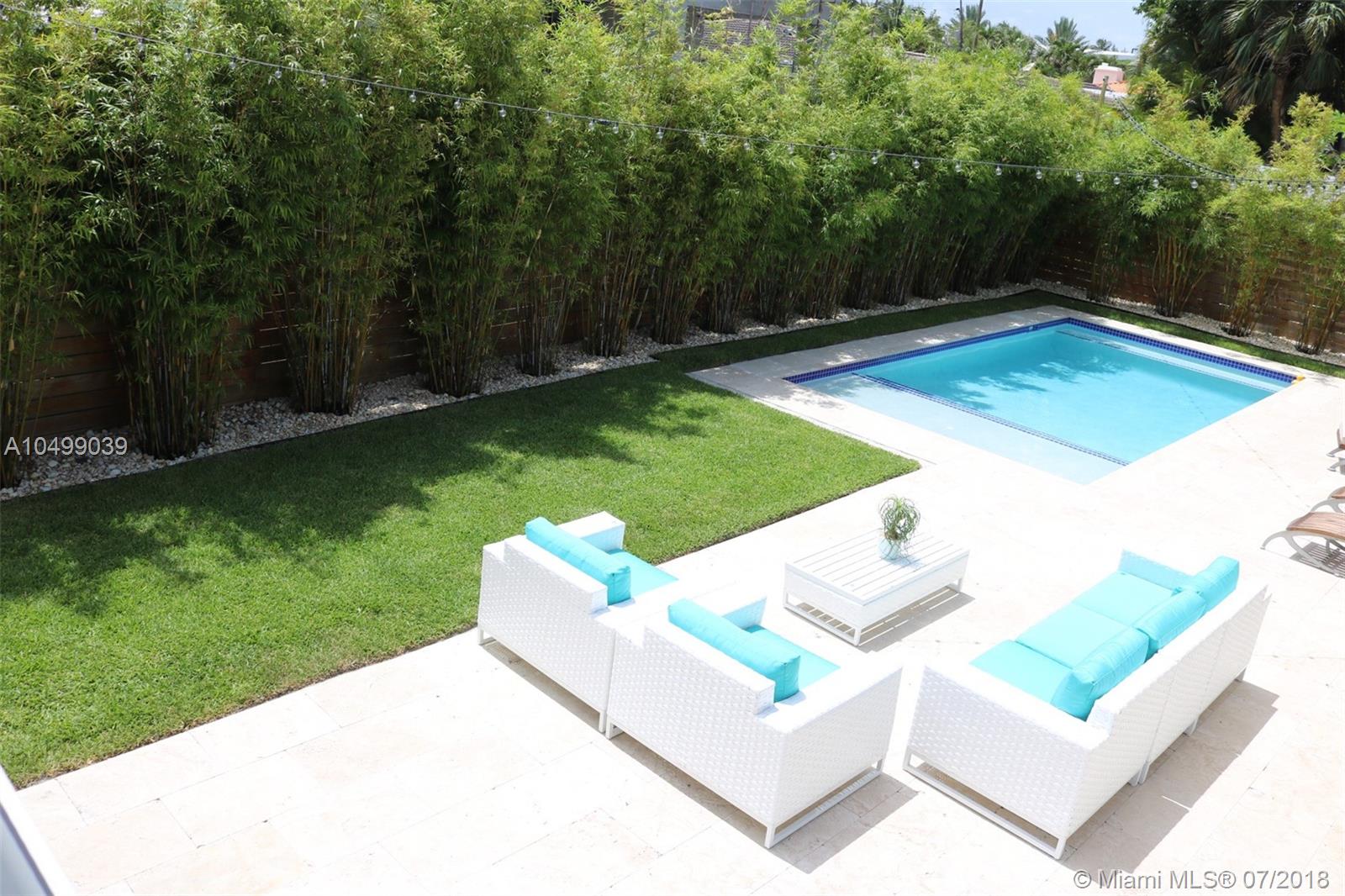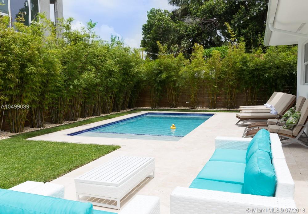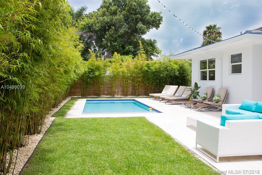Completely Renovated in 2018 with a classic – style exterior, modernized interior and a tropical garden. This warm and welcoming design home is situated on a double lot (9,677 sf) on the prestigious and quiet neighbor of Surfside. Half block from Bal Harbour shops, three block from the beach and walking distance to restaurants. This luxury home features an open floor plan with a living room, formal dining, a family room and a chef’s kitchen with breakfast bar. 5 bedrooms and 4-1/2 bathrooms; a guest house/pool cabana; a pool and a tropical garden that wraps around the entire house providing beautiful green views !!! Perfect location for families. A+ rated school of Bal Harbour.