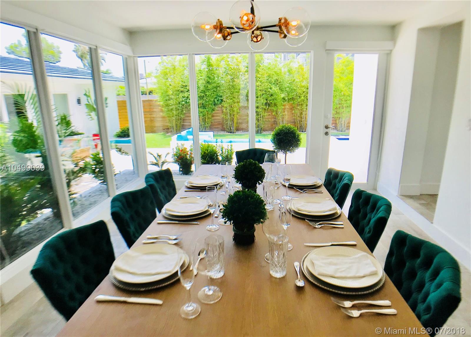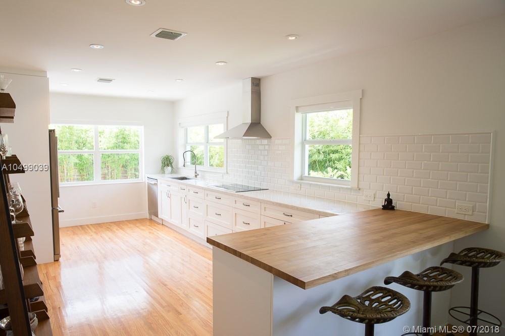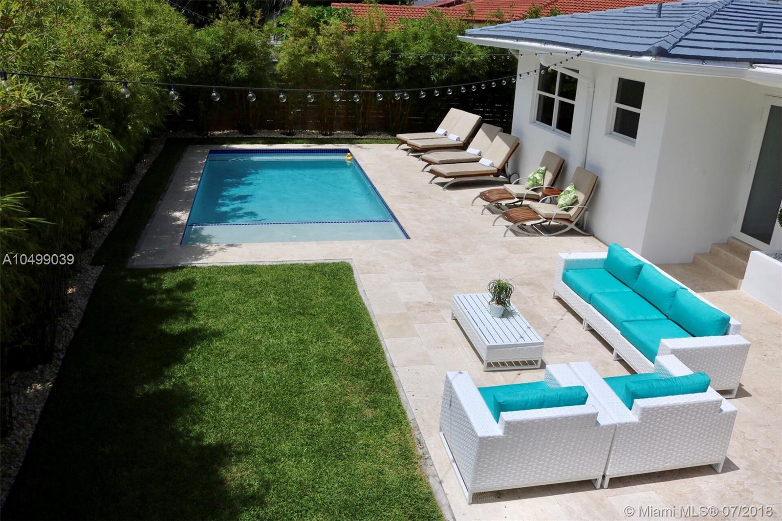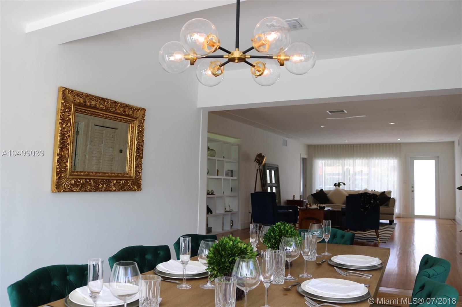 Completely Renovated in 2018 with a classic – style exterior, modernized interior and a tropical garden. This warm and welcoming design home is situated on a double lot (9,677 sf) on the prestigious and quiet neighbor of Surfside. Half block from Bal Harbour shops, three block from the beach and walking distance to restaurants. This luxury home features an open floor plan with a living room, formal dining, a family room and a chef’s kitchen with breakfast bar. 5 bedrooms and 4-1/2 bathrooms; a guest house/pool cabana; a pool and a tropical garden that wraps around the entire house providing beautiful green views !!! Perfect location for families. A+ rated school of Bal Harbour.