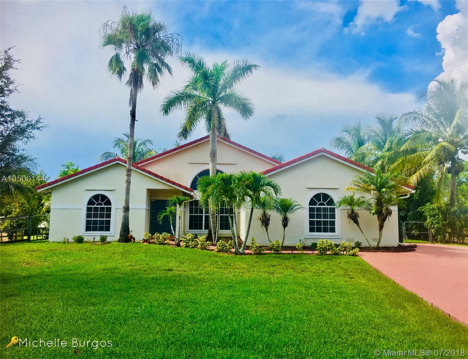 Awesome DAVIE Home for Sale – HOT LISTING “A” School District; Cambridge Curriculum High School; Highly Sought After Community; NO HOA; Two Master Bedrooms; Cabana Bathroom Opens to Pool; 18x36 Sports Pool & Paver Deck; Acre of Land; Property Fully Fenced and Safe for Kids and Pets; Horses Allowed - Equestrian; Animal-Friendly; 14’ Vaulted Ceilings; Nice Floor Plan; 6’ Attic Allows Room For Loft/Office; Fire Station & Parks within Walking Distance. Enjoy a RURAL NEIGHBORHOOD without an HOA or restrictions. Oak Hill is one of the few remaining locations in Broward where you can enjoy "A" rated schools with close proximity to entertainment, beaches, hospitals, shopping, parks, airport, the city of Miami, Fort Lauderdale and West Palm Beach.