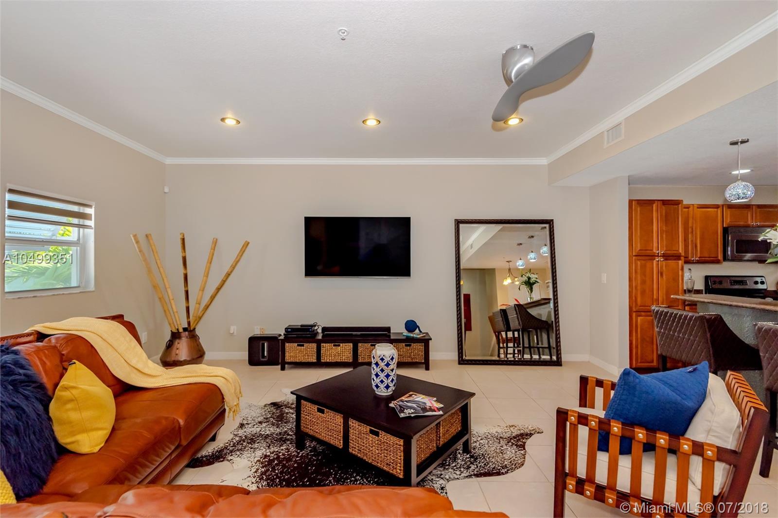 A magnificently stunning Key West style tri-level townhome with 4 Beds, 2.5 Bath & a large 2 car garage. An oversized first-floor guest room easily functions as a den or office. Nestled in a quiet, well-manicured and maintained 31-unit complex. Home includes High Impact Windows, an Open Floor Plan Kitchen, Breakfast Bar, SS appliances with a topnotch 2018 Refrigerator and lots of storage space. Relax in a large master suite w/ a walk-in closet. Ceramic tile and upgraded laminate flooring premium window treatments. Homeowner spared no expenses with a powered patio awning, motorized terrace sunscreen, stylish ceiling fans, crown molding in the great room & full size stacked W/D. Stone pavers in backyard make entertaining fun. This immaculately kept turnkey home is a MUST SEE!!!!!
