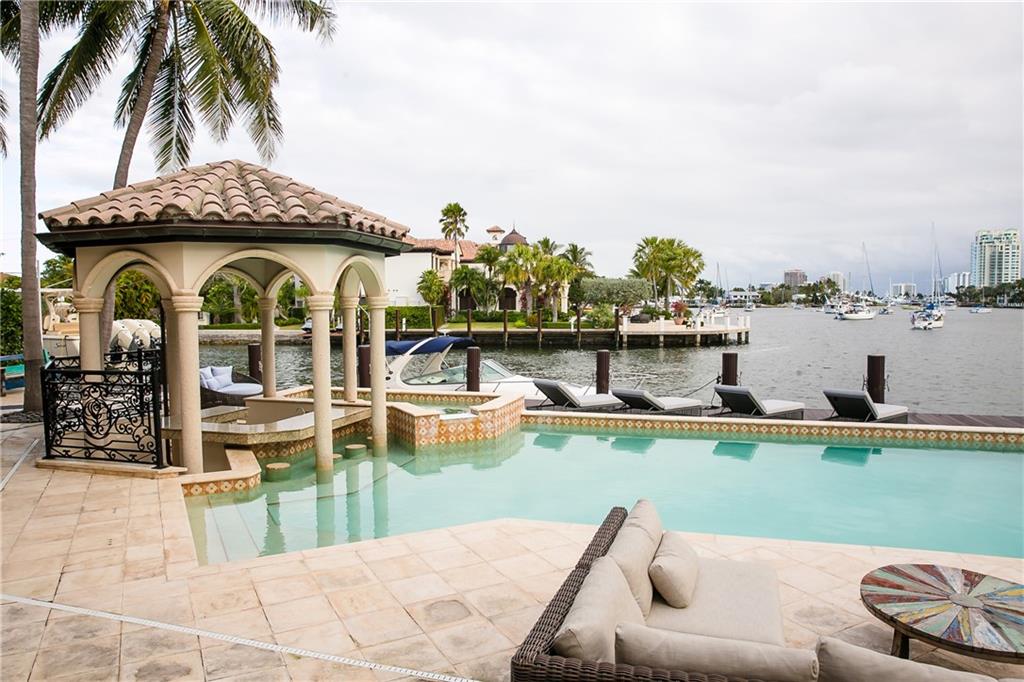 This spectacular walled and gated estate is a yacht owner's dream! Over 400' of deep water frontage, quick & easy ocean access & dockage for 2 mega yachts! Gourmet kitchen, full service bar, lavish master suite w/expansive closets, theater & elevator. Swim-up pool bar & spa. 4 car garage. Lush landscaping. Tranquil lake views, prestigious Harbor Beach location, close to air & sea ports, fine dining, shopping & major highways. Private Beach Club & marina membership available.