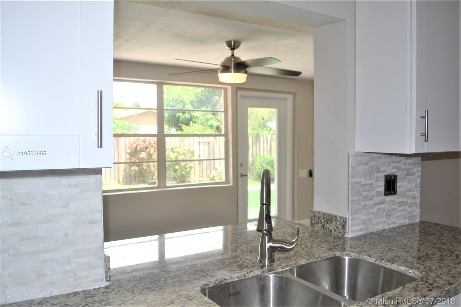 Perfect all remodeled and upgraded 4 bedroom, 2 bath home with pool and 1 car garage close to everything. Home boasts open and bright floor plan with new flooring, new modern white wood soft closing kitchen cabinets with granite counters, stone backsplash and brand new stainless steel appliances, new bathroom vanity, designer tiles in both baths, new LED ceiling fans and lighting throughout, fresh paint, newer A/C and water heater, brand new garage door and much more! Come home to your tropical private oasis, with plenty of room to entertain,and enjoy your free form salt water pool with brand new pool motor in your private fenced in backyard with beautiful coconut tree, paved deck, and enjoy South Florida sunny days!