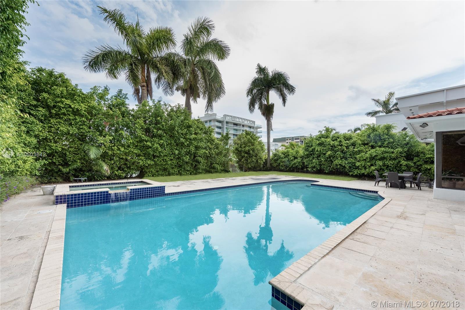 This 4 bedroom, 3.5 bathroom home in tranquil Bay Harbor Island rests on a 11,250 sf. lot overlooking an Intracoastal Waterway with 75 ft of waterfront. The home features 3,423 adjusted square feet, marble floors & hardwood floors, large living and dining area with floor to ceiling windows that open to views of the pool and waterway. The eat-in kitchen features granite countertops & Cherry wood cabinets. The master suite features a master bath w/separate shower & Jacuzzi tub. The other three bedrooms are each spacious. Exterior highlights incl. a wooden dock and pool w/Jacuzzi. This home has the potential to become your dream family home. Minutes to the beach, famous Bal Harbour Shops & fine dining. Bay Harbor is a wonderful neighborhood.