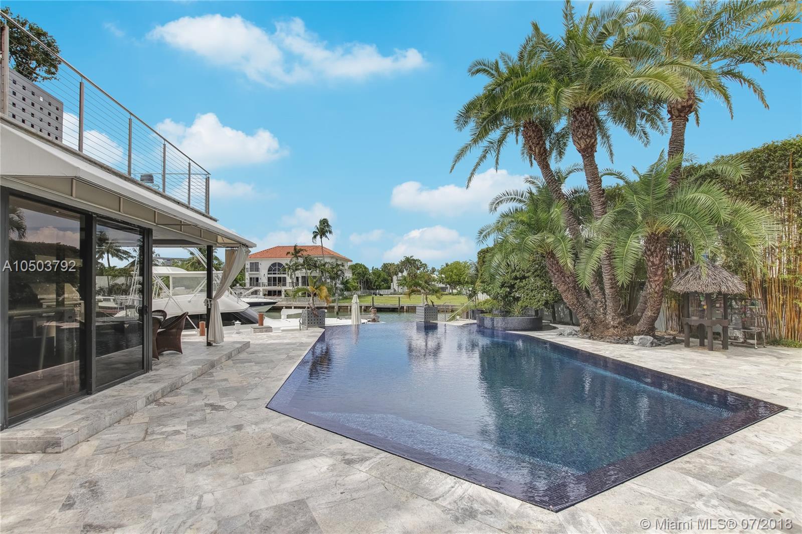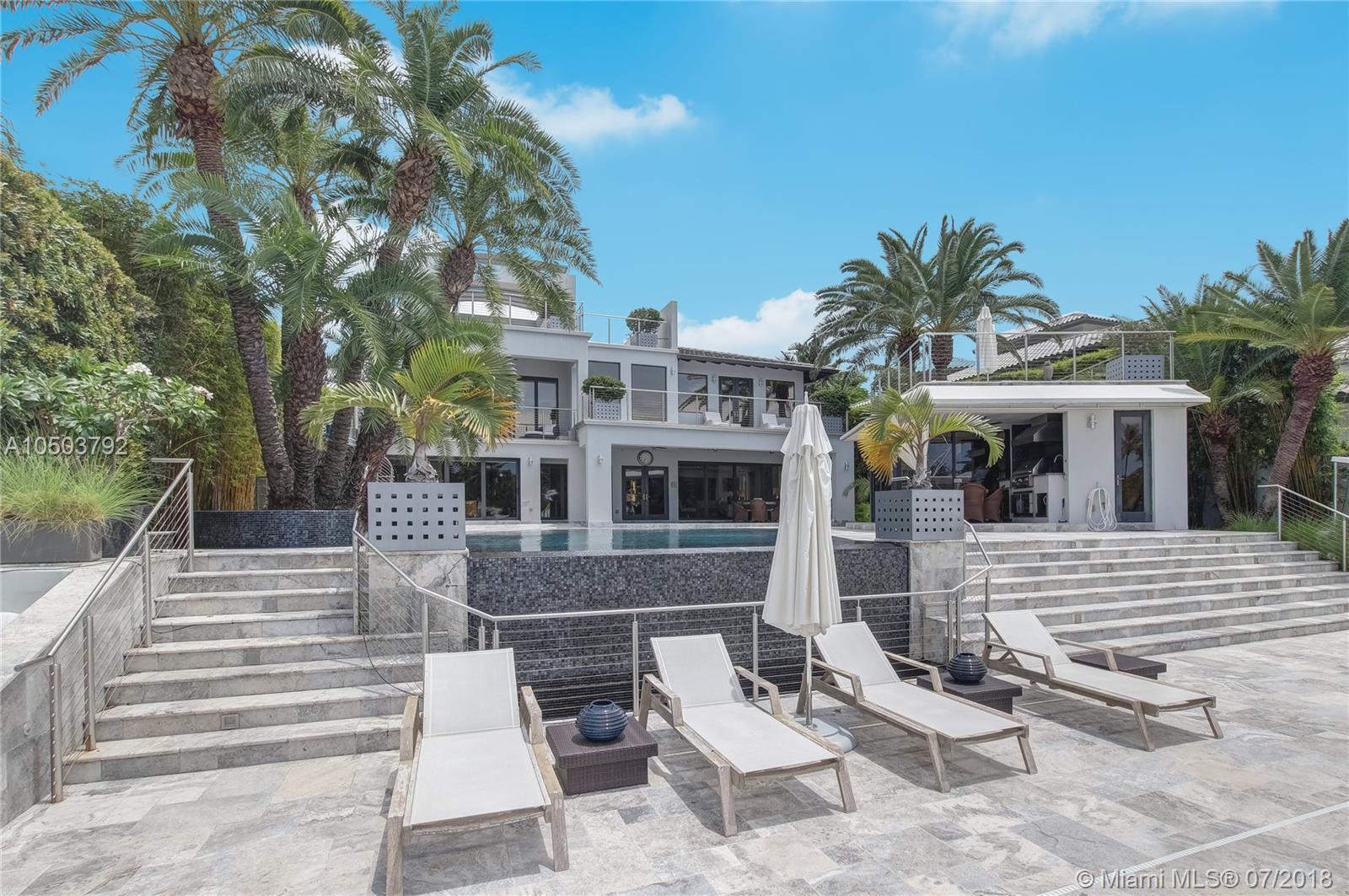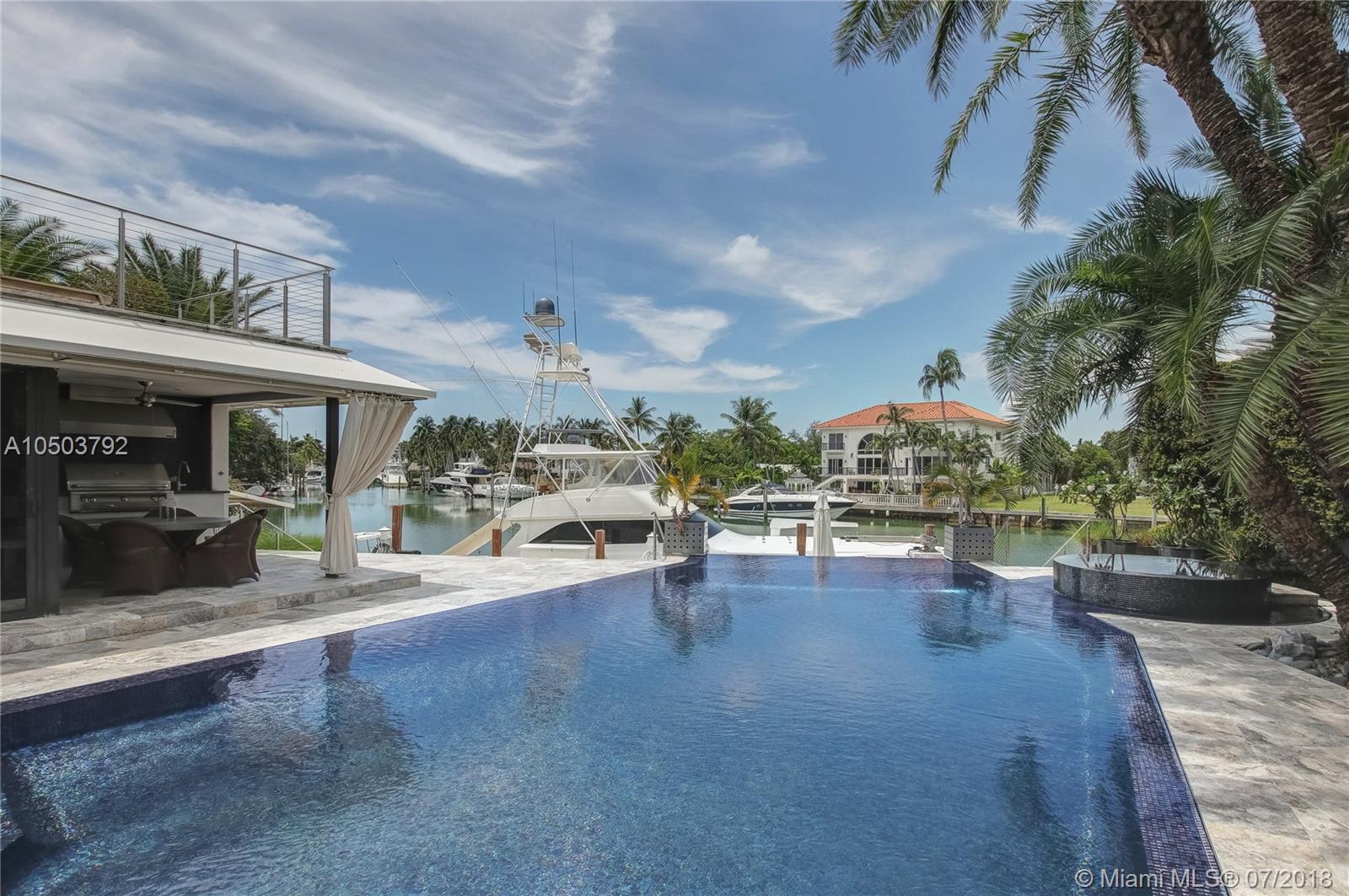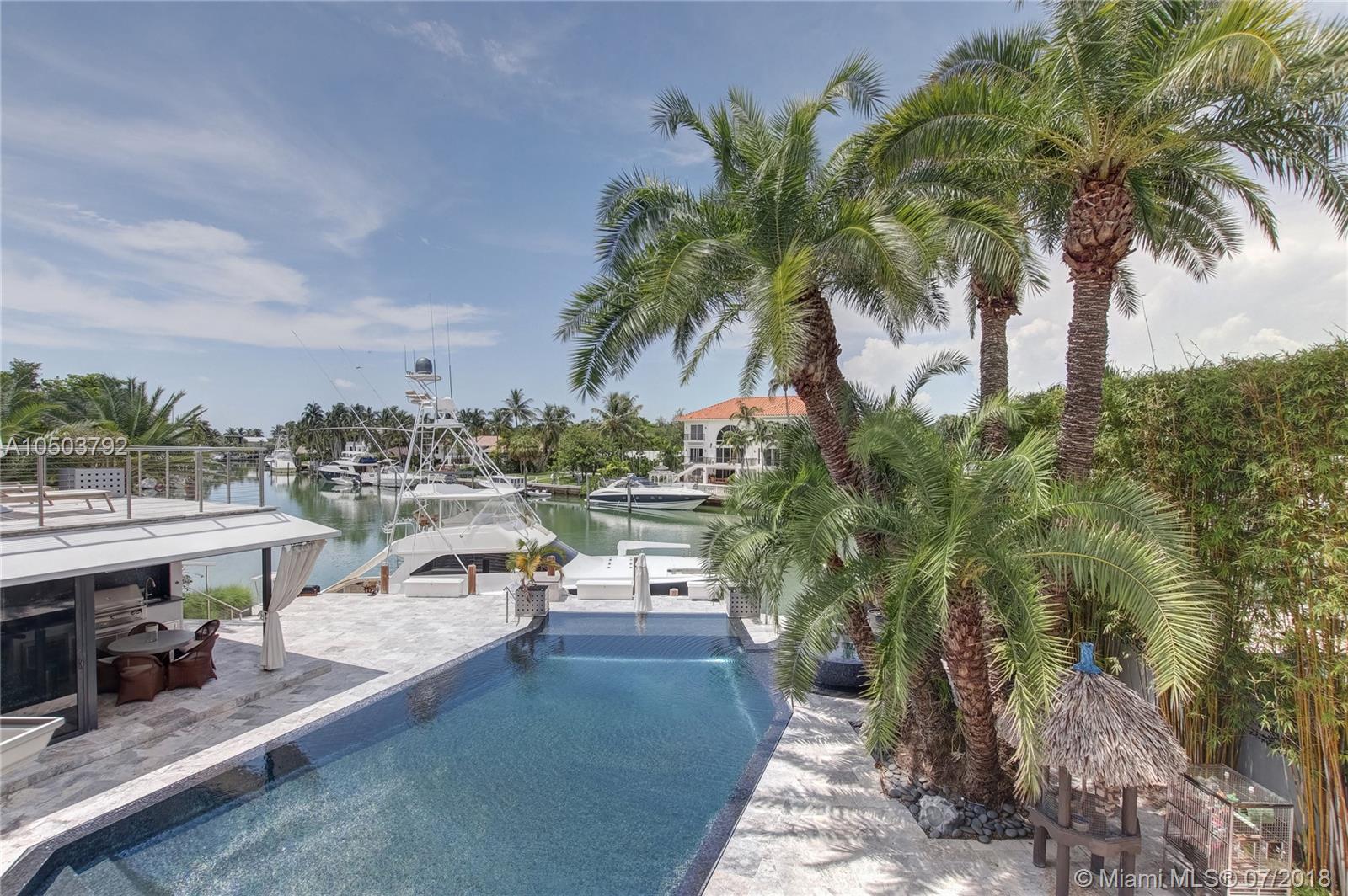 Featuring The Island House, the jewel of Key Biscayne! Nestled on a quiet street & truly a boaters paradise, this stunning Modern Marvel features over 6300 sq ft of the highest in quality finishings, design, appliances & building materials. No expense was spared in construction from imported marble & wood floors, glass cased wine cellar, home generator, impact doors & windows & a roof top terrace with breath-taking views. Bask in the lifestyle this estate offers & enjoy a moments' drift into the open ocean for a day at sea.Water features begin from the doorsteps with a running waterfall, a 500 gallon salt water fish tank & all the way through to your private dock. Pool house complete with full gym, bathroom & sundeck. Garage with 2 lifts for 4 cars.
