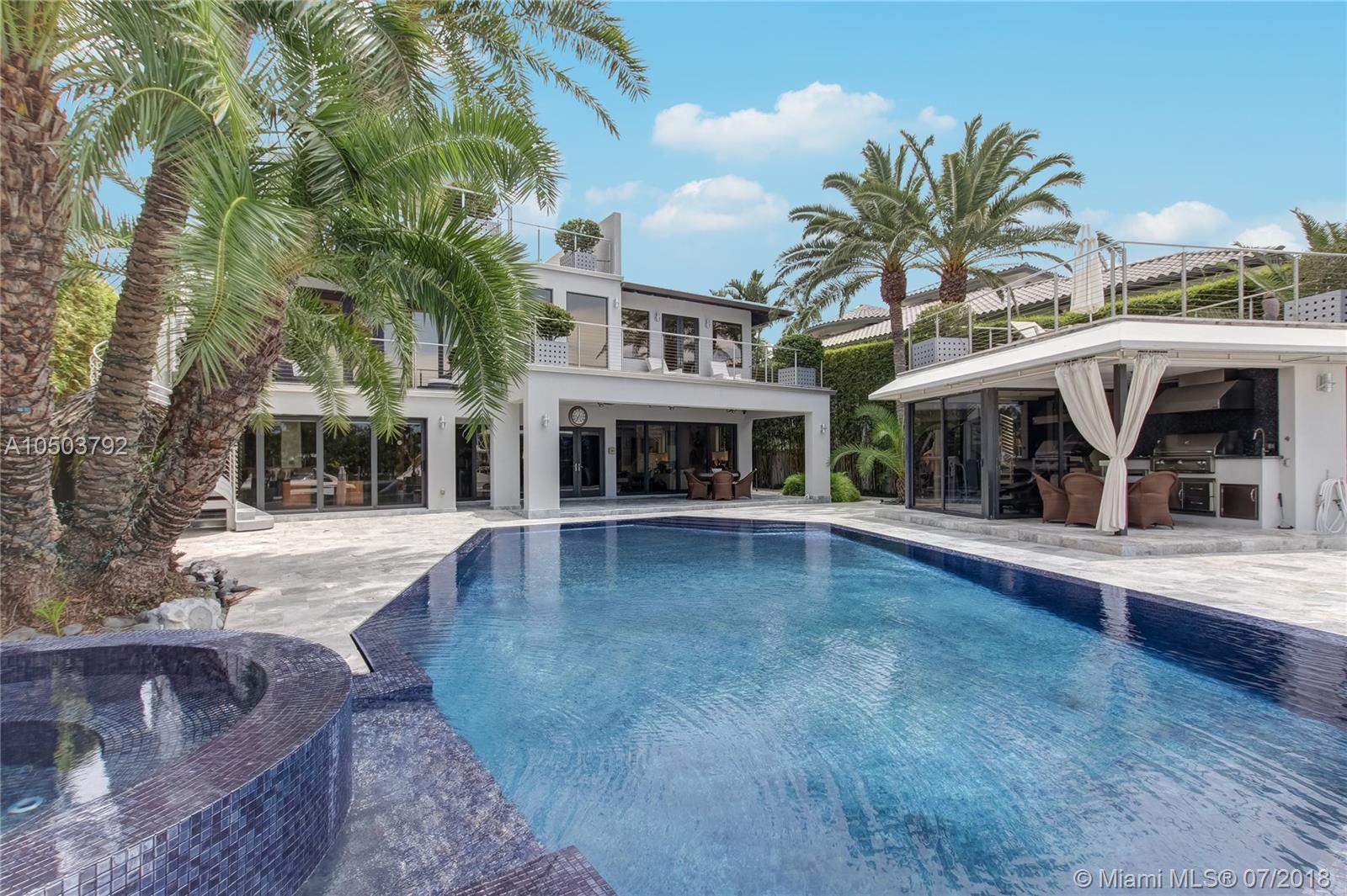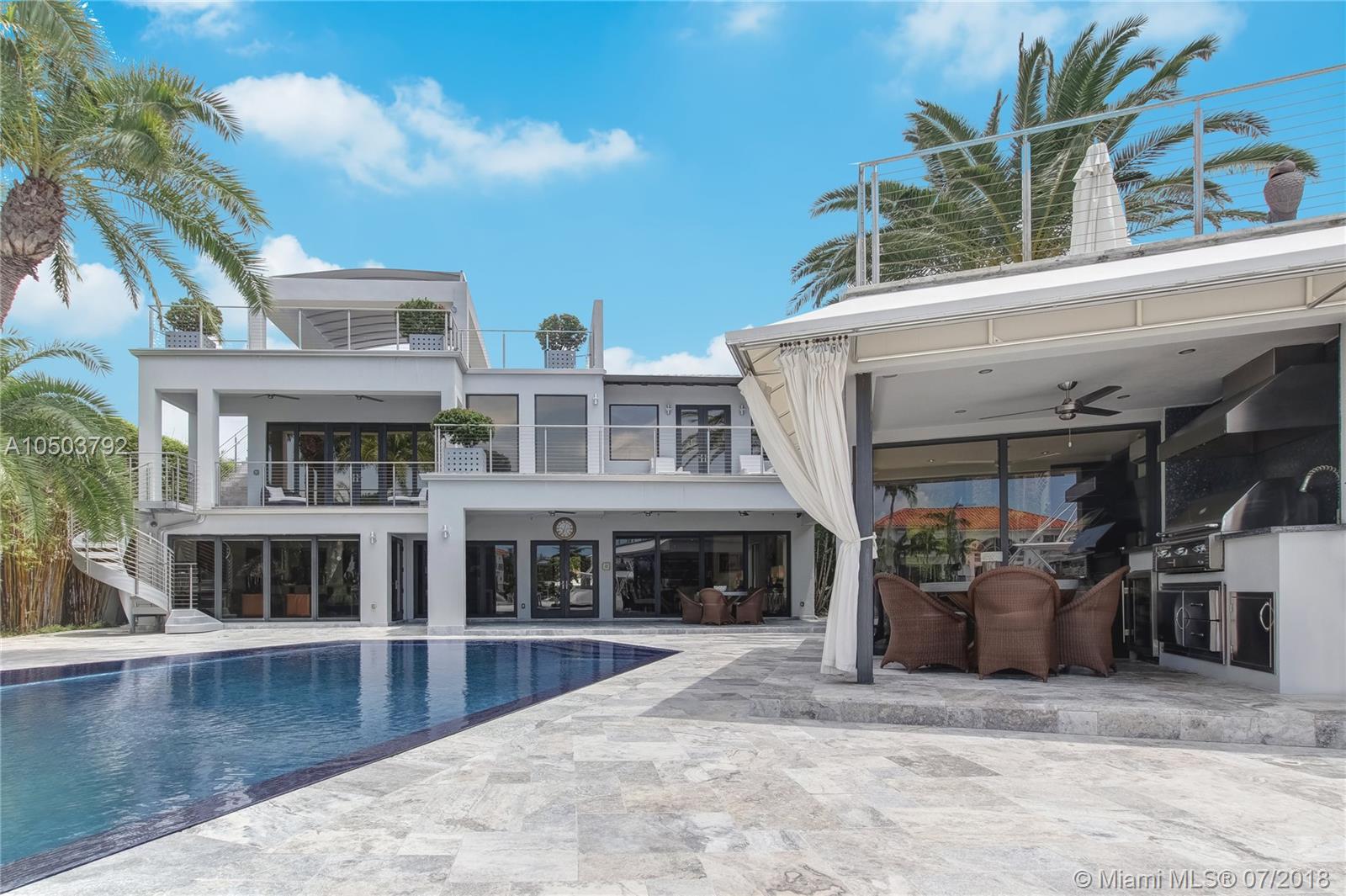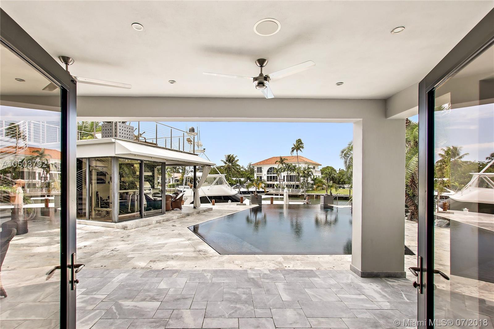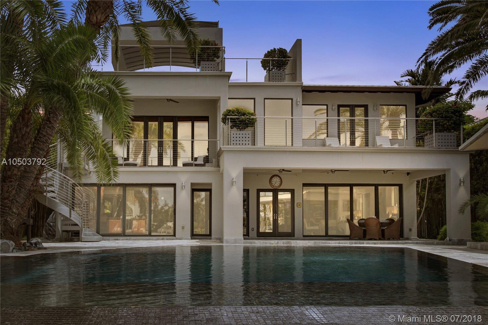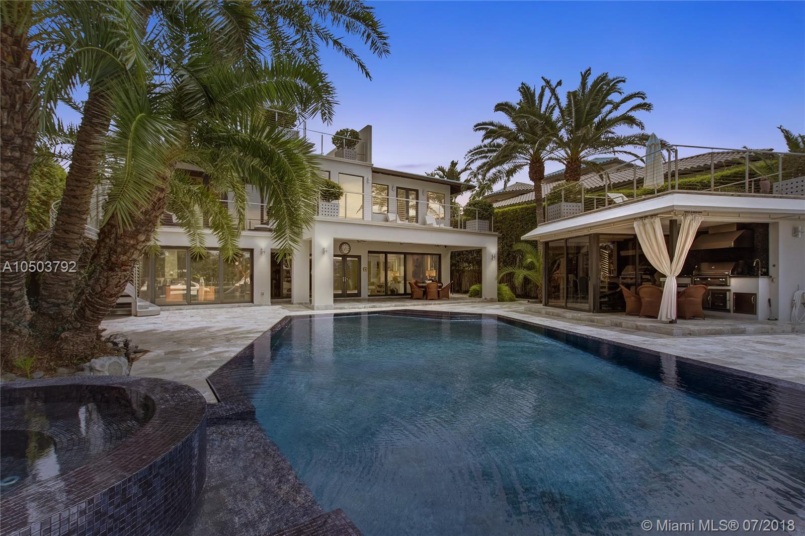 Featuring The Island House, the jewel of Key Biscayne! Nestled on a quiet street & truly a boaters paradise, this stunning Modern Marvel features over 6300 sq ft of the highest in quality finishings, design, appliances & building materials. No expense was spared in construction from imported marble & wood floors, glass cased wine cellar, home generator, impact doors & windows & a roof top terrace with breath-taking views. Bask in the lifestyle this estate offers & enjoy a moments' drift into the open ocean for a day at sea.Water features begin from the doorsteps with a running waterfall, a 500 gallon salt water fish tank & all the way through to your private dock. Pool house complete with full gym, bathroom & sundeck. Garage with 2 lifts for 4 cars.