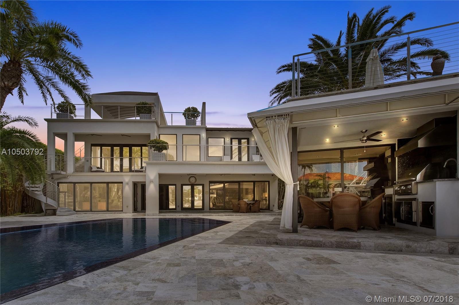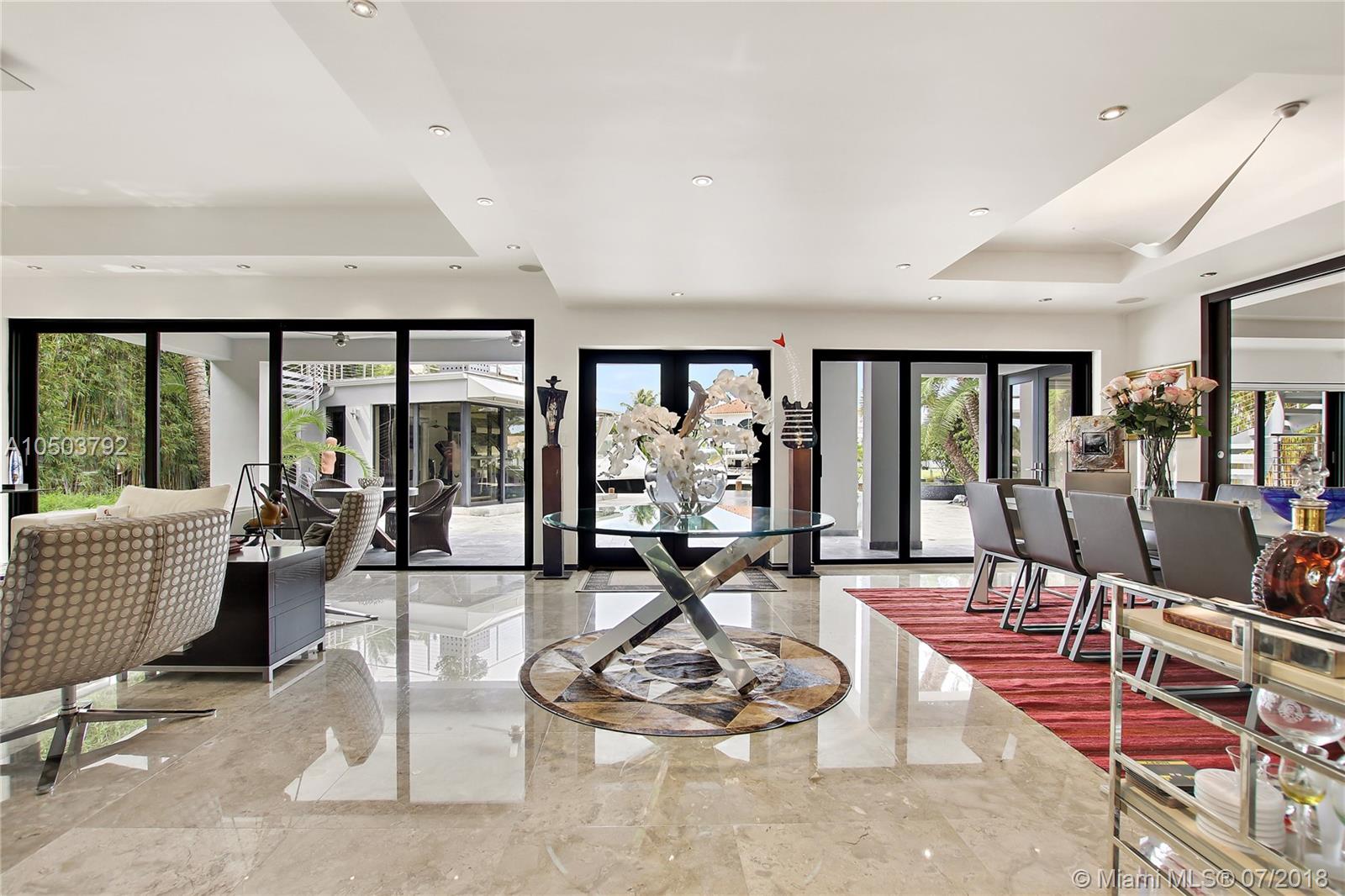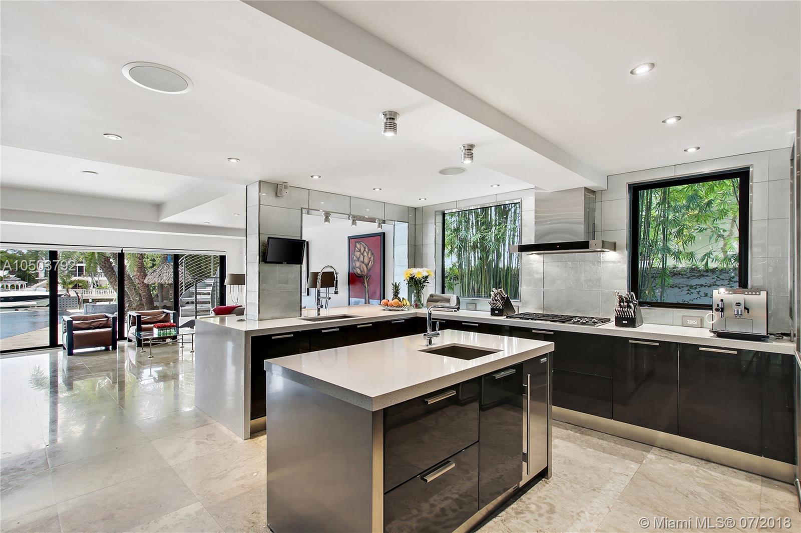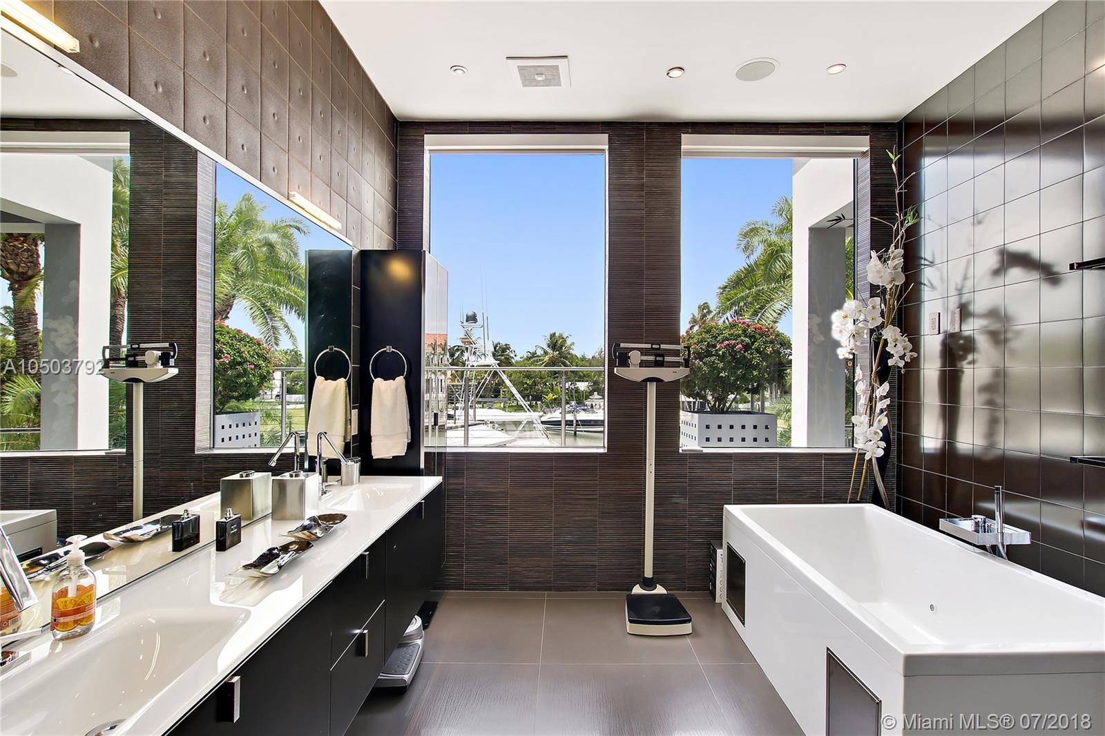 Featuring The Island House, the jewel of Key Biscayne! Nestled on a quiet street & truly a boaters paradise, this stunning Modern Marvel features over 6300 sq ft of the highest in quality finishings, design, appliances & building materials. No expense was spared in construction from imported marble & wood floors, glass cased wine cellar, home generator, impact doors & windows & a roof top terrace with breath-taking views. Bask in the lifestyle this estate offers & enjoy a moments' drift into the open ocean for a day at sea.Water features begin from the doorsteps with a running waterfall, a 500 gallon salt water fish tank & all the way through to your private dock. Pool house complete with full gym, bathroom & sundeck. Garage with 2 lifts for 4 cars.