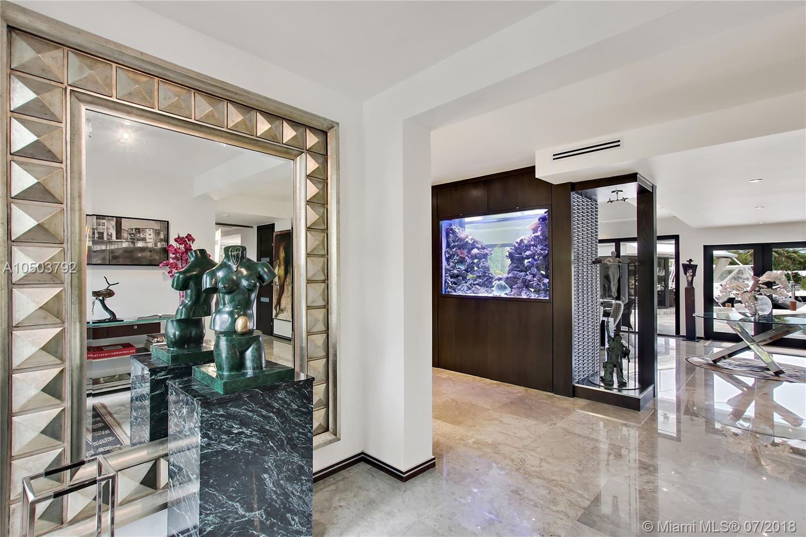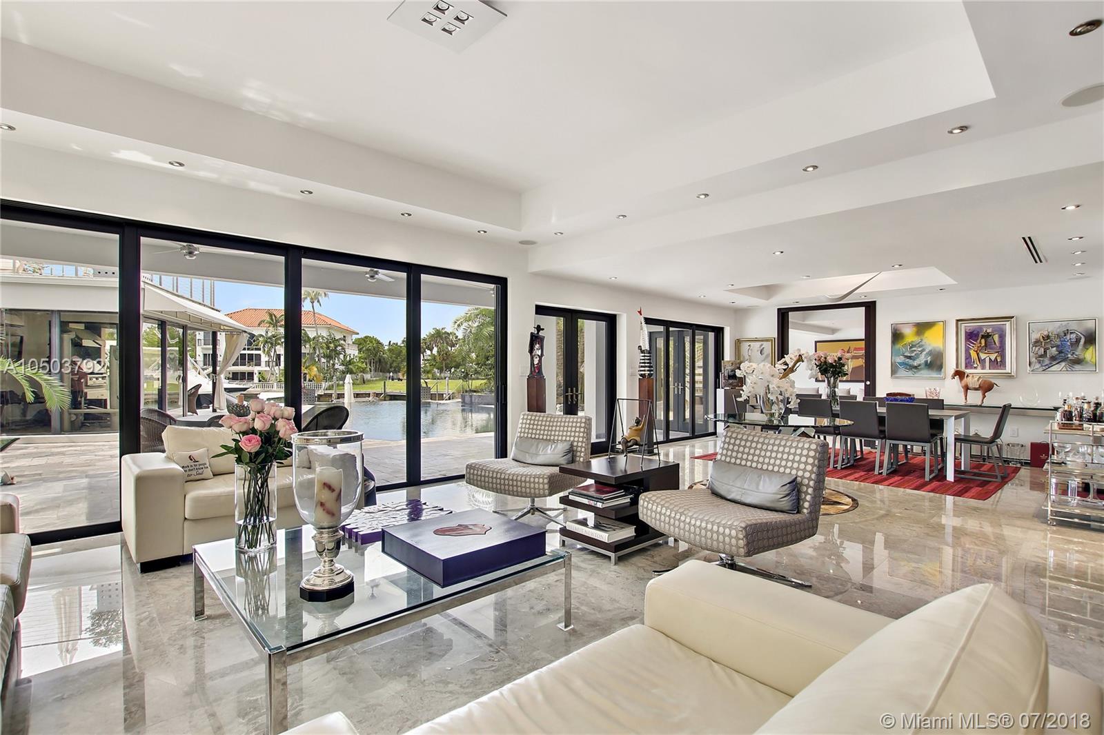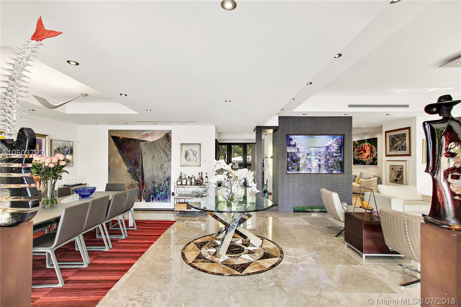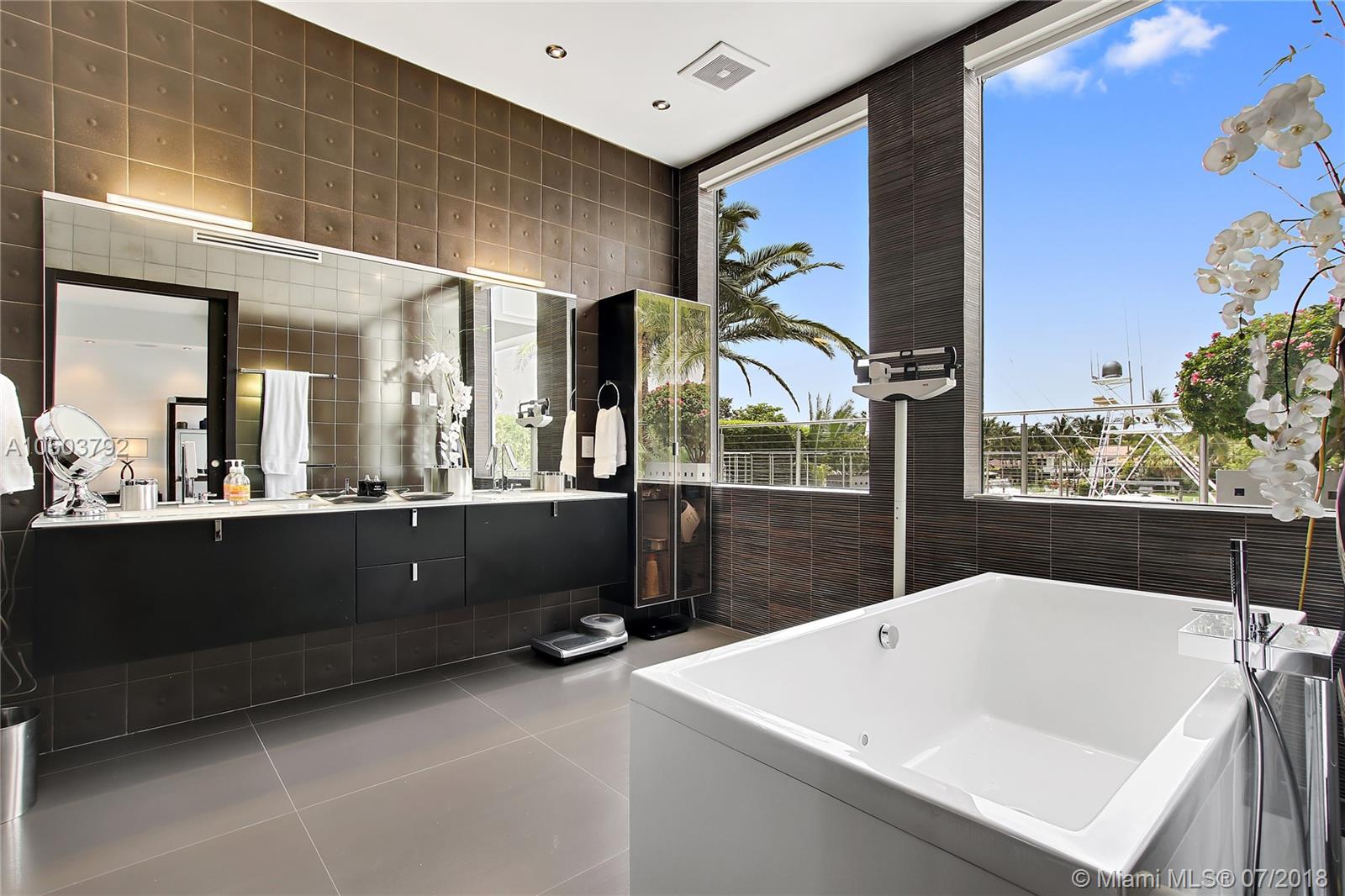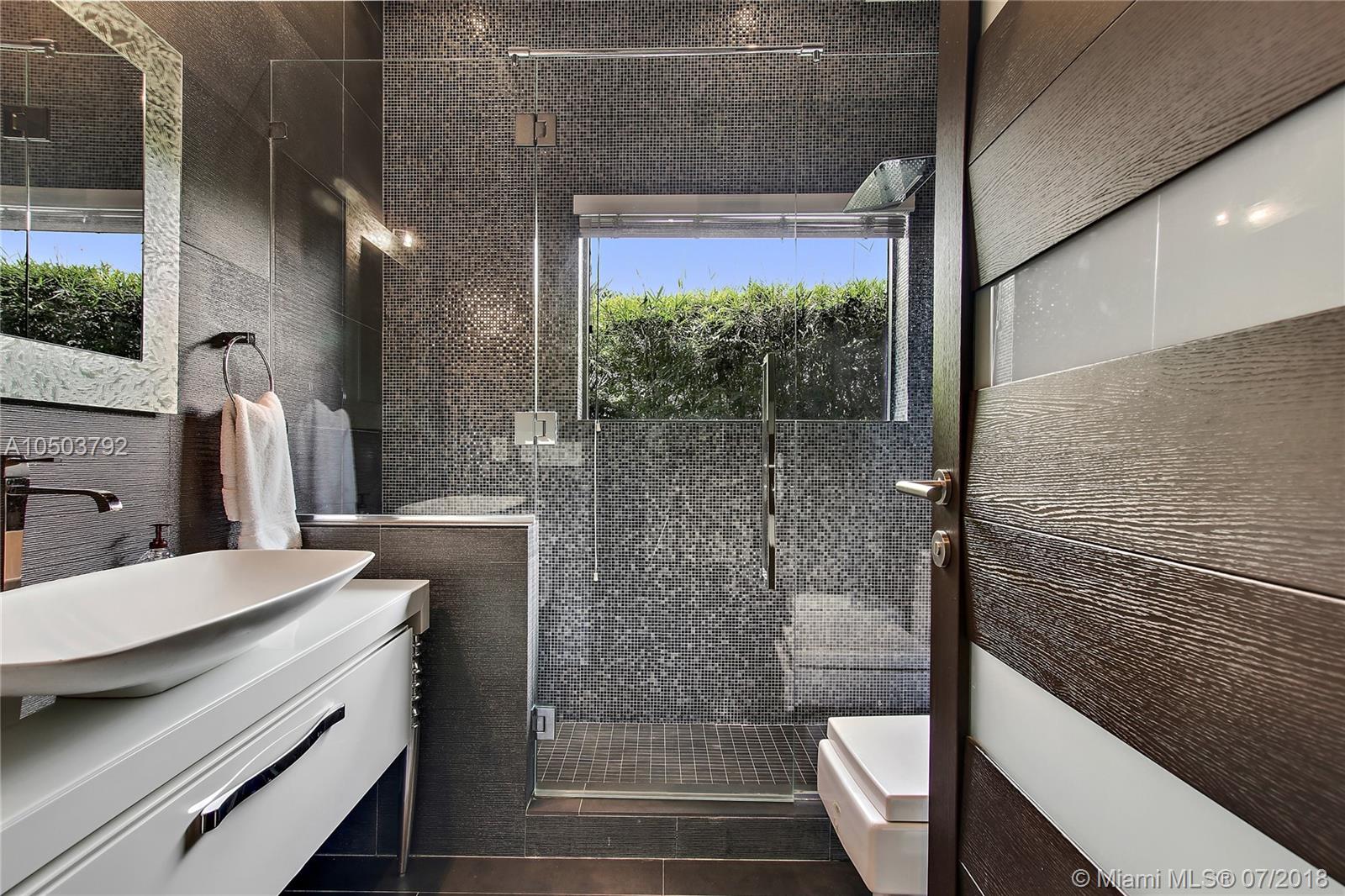 Featuring The Island House, the jewel of Key Biscayne! Nestled on a quiet street & truly a boaters paradise, this stunning Modern Marvel features over 6300 sq ft of the highest in quality finishings, design, appliances & building materials. No expense was spared in construction from imported marble & wood floors, glass cased wine cellar, home generator, impact doors & windows & a roof top terrace with breath-taking views. Bask in the lifestyle this estate offers & enjoy a moments' drift into the open ocean for a day at sea.Water features begin from the doorsteps with a running waterfall, a 500 gallon salt water fish tank & all the way through to your private dock. Pool house complete with full gym, bathroom & sundeck. Garage with 2 lifts for 4 cars.