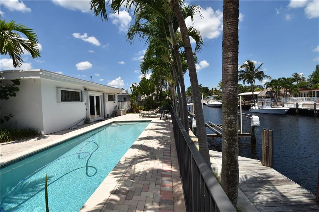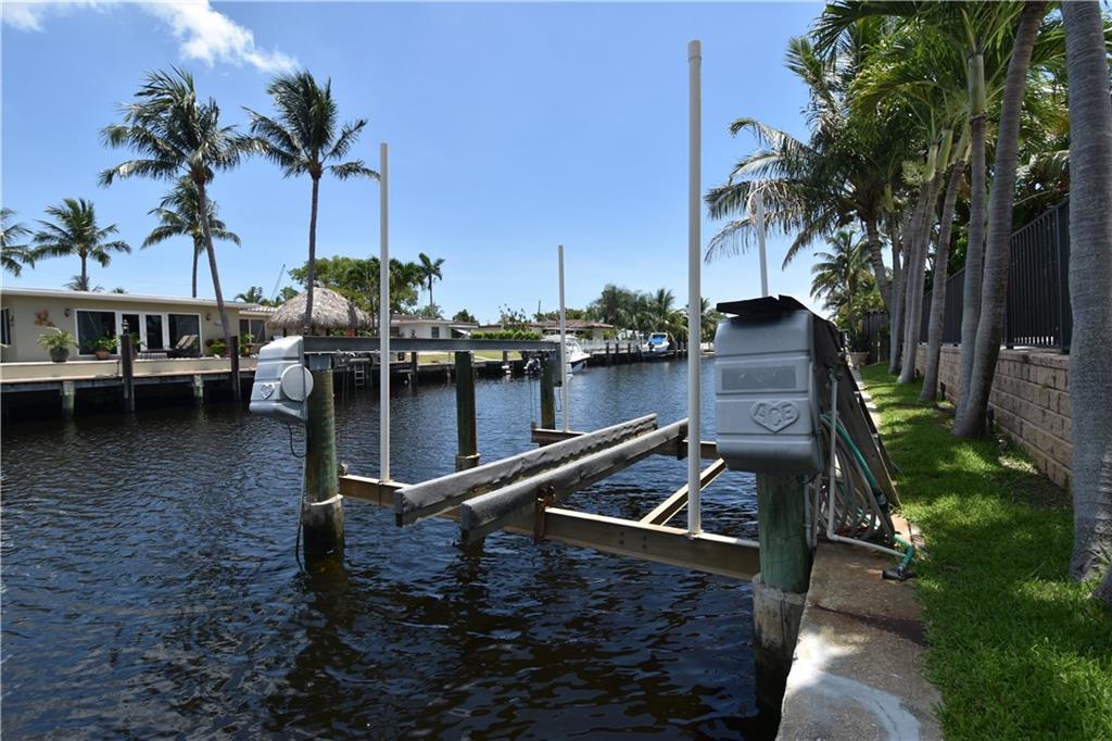 Over 2000 square ft under air ocean access heated pool home with jacuzzi. Wide open floor plan perfect for indoor/outdoor entertaining. 20,000 pound boat lift. Some impact glass and shutters. Large storage room that can be easily converted to garage. Open kitchen.