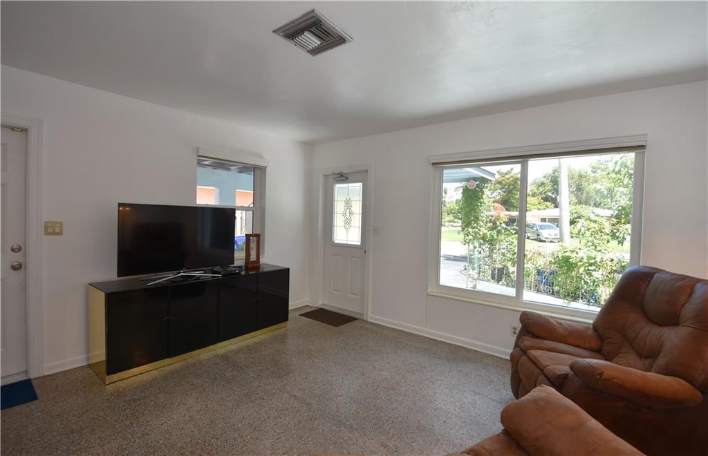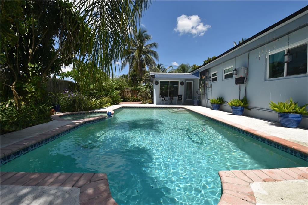 Move in ready 3 bedroom 2 bathroom with carport and large utility room. Open floor plan with lots of natural light. Energy efficient home with hurricane impact doors and windows throughout and a whole house generator that runs on natural gas. Salt water pool surrounded by lush landscaping. Solar panels on roof that reduce electric bill. Terrazzo floors throughout. Roof 8 years old