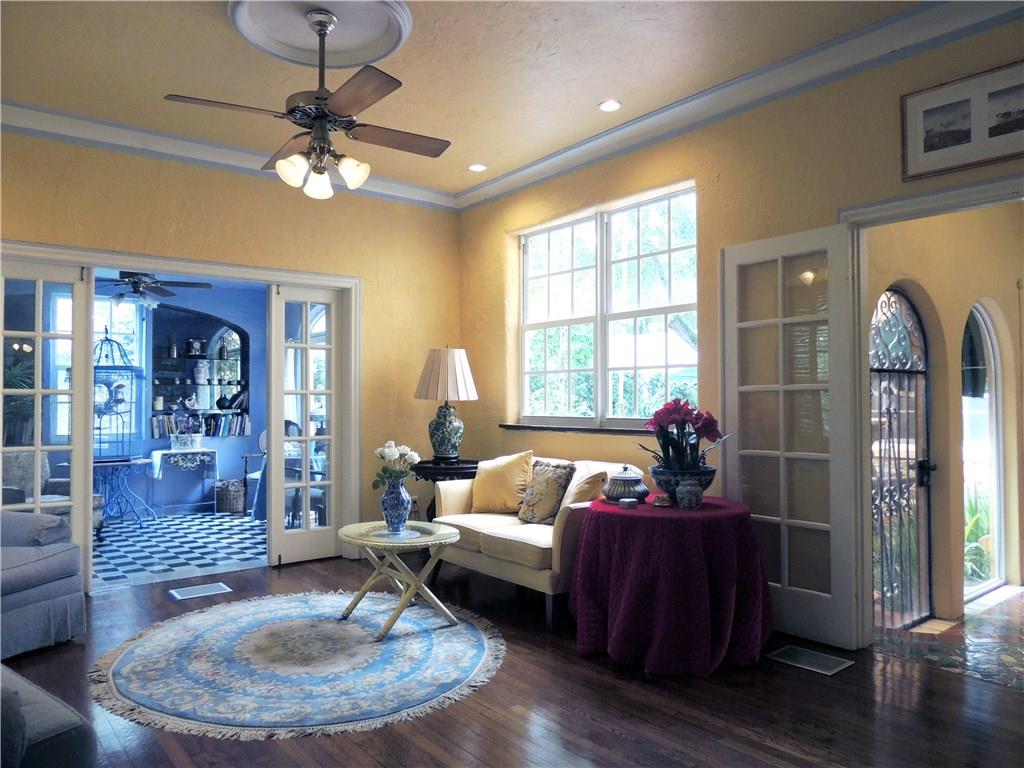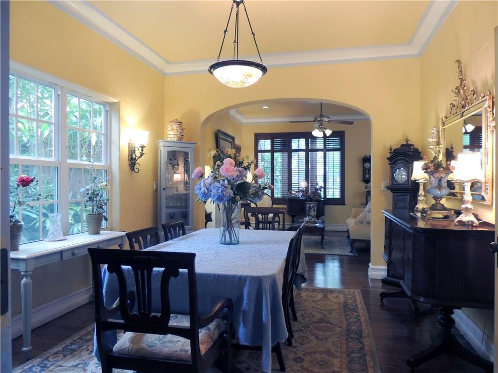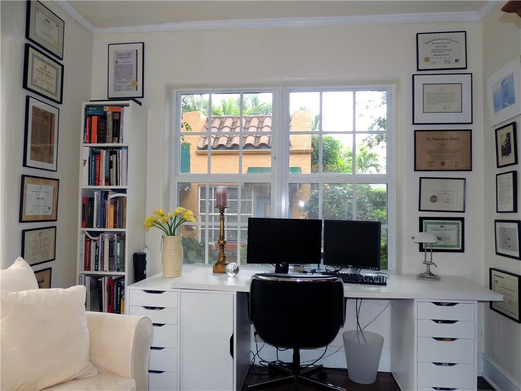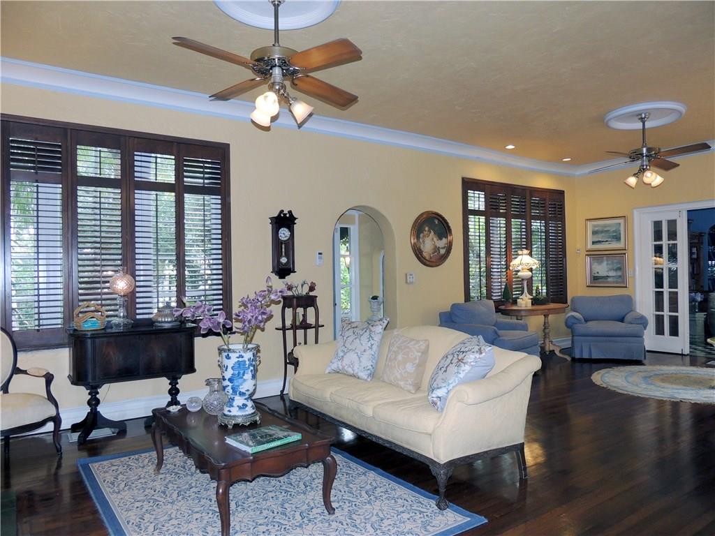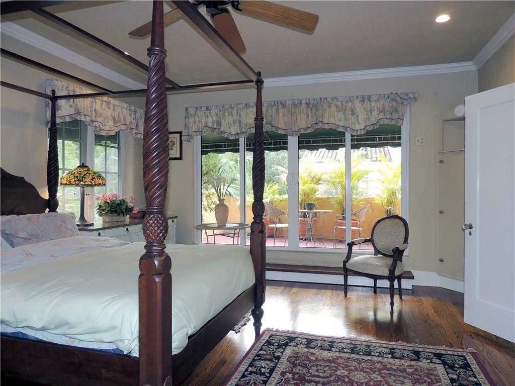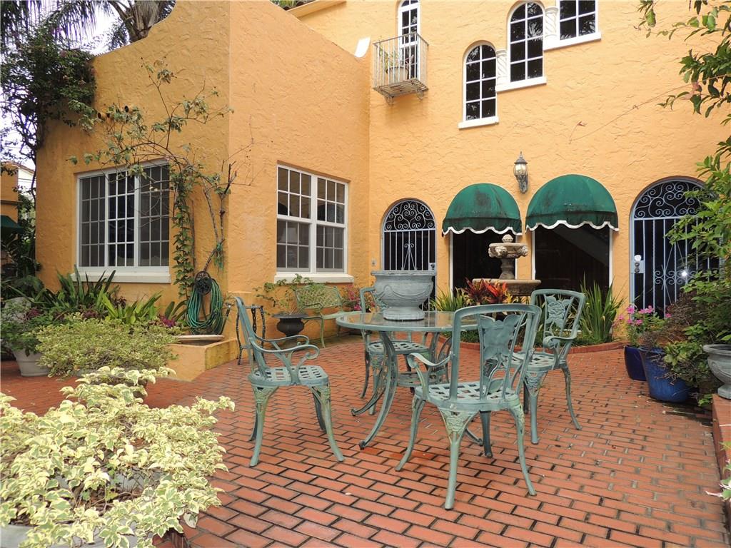 Historic two story Old Spanish villa on desirable Asturia Ave, one block from Granada Golf Course, 5 minute drive to downtown Coral Gables. Built in 1925 with 10' high 1st floor ceilings, crown moldings, hardwood floors, wood burning fireplace, large kitchen with breakfast bar, walled garden style patio with fountain and awning covered area, perfect elegant entertaining area. Separate 1/1 guest house & a large party room. Large master bedroom with terrace. Impact windows and sliding glass doors.
