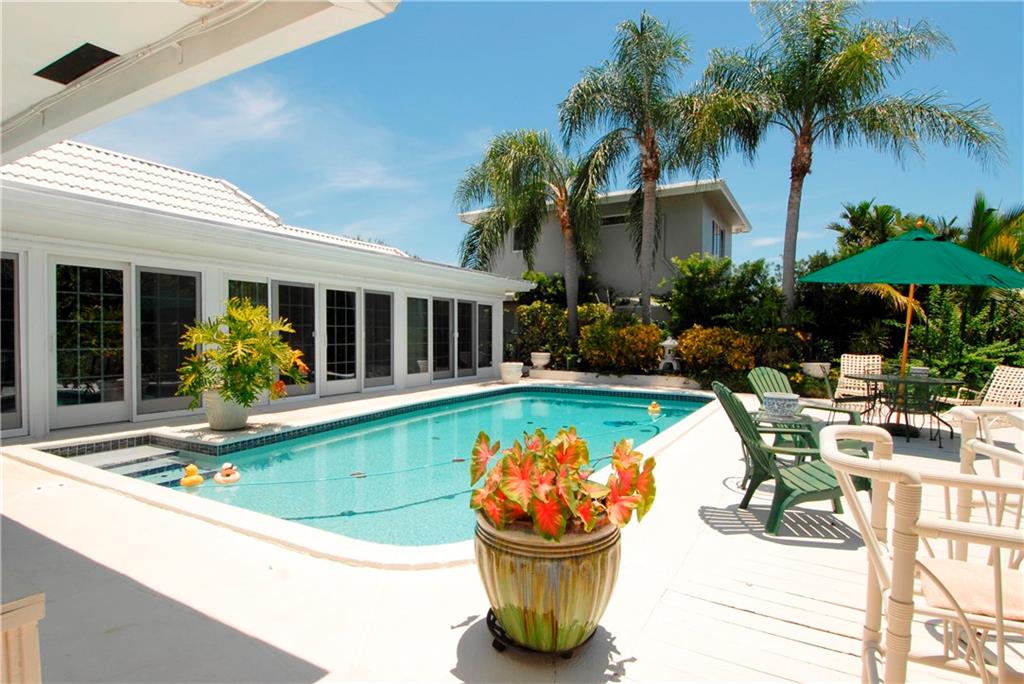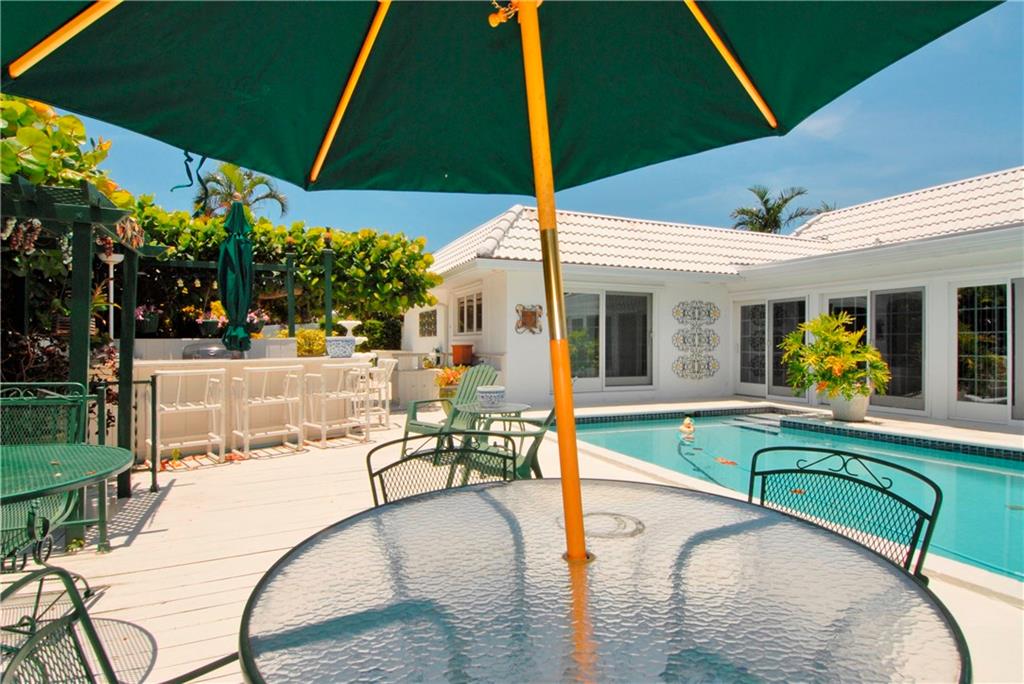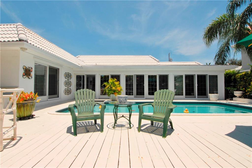 Immaculate 4/3 pool home with direct ocean access! Renovated with a newer roof, some impact glass windows, marble flooring, fireplace, French doors and so much more. Gourmet kitchen with granite counters. Bonus Florida room and Family room in this most popular Rutenberg split floor plan. 80' Waterfront and dock. Approximately 2600 sf under a/c. Two car garage and plenty of guest parking. Lush landscaping. South exposure. Sold "As Is." Desirable East Location-Close to Beach, Entertainment, Restaurants