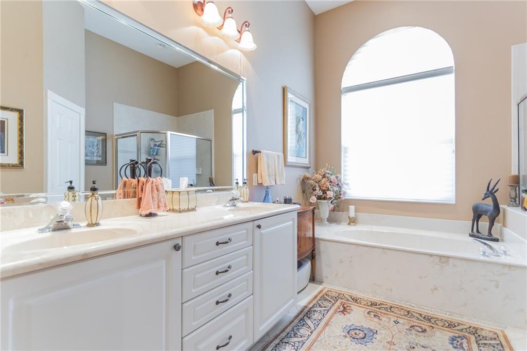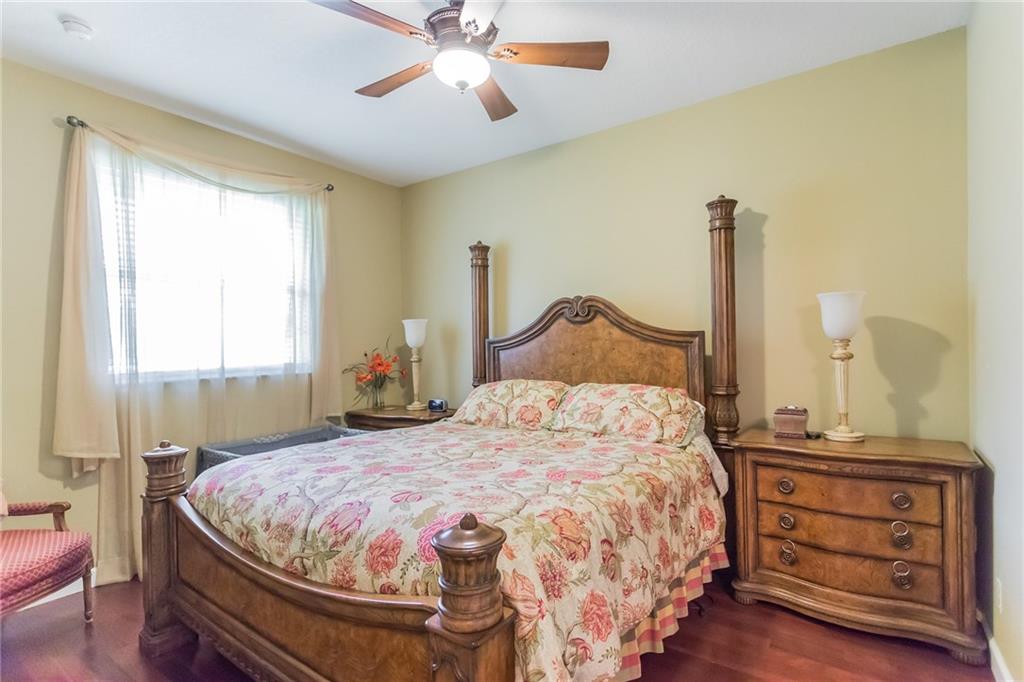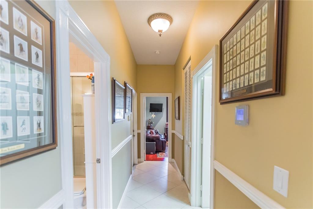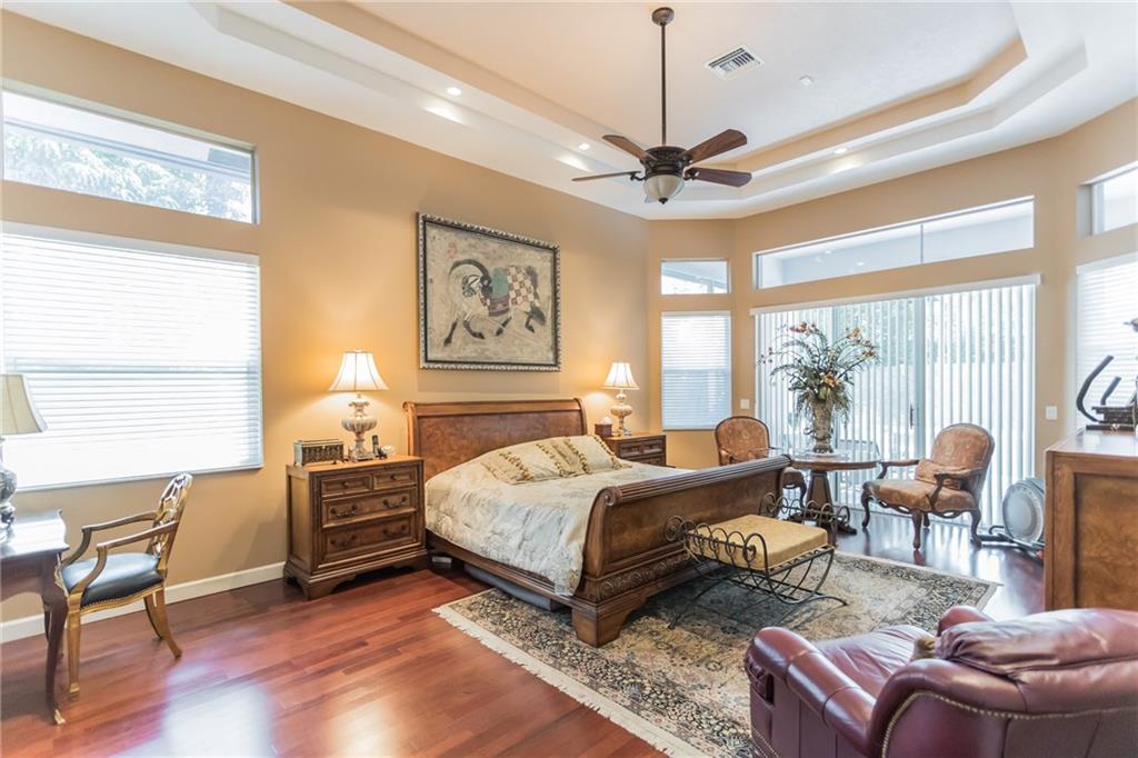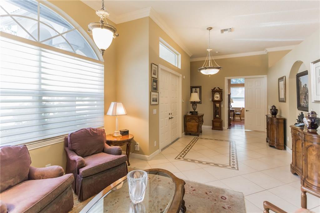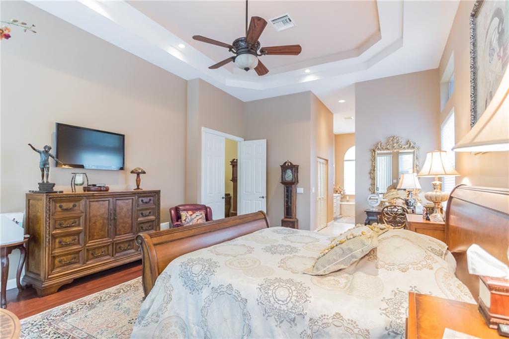 4 bed+office on just under an acre in a gated community features tray ceilings, crown molding, tile floors in main living areas & wood floors in bedrooms/office. Central kitchen has granite counters & stainless appliances, views across the family room to the screen porch, private rear yard & pool. Master suite has his & hers closest, dual sinks, garden tub & corner shower. 2 further ensuite bedrooms & all closets w/ built ins. Paver circular driveway provide plenty of room for parking.