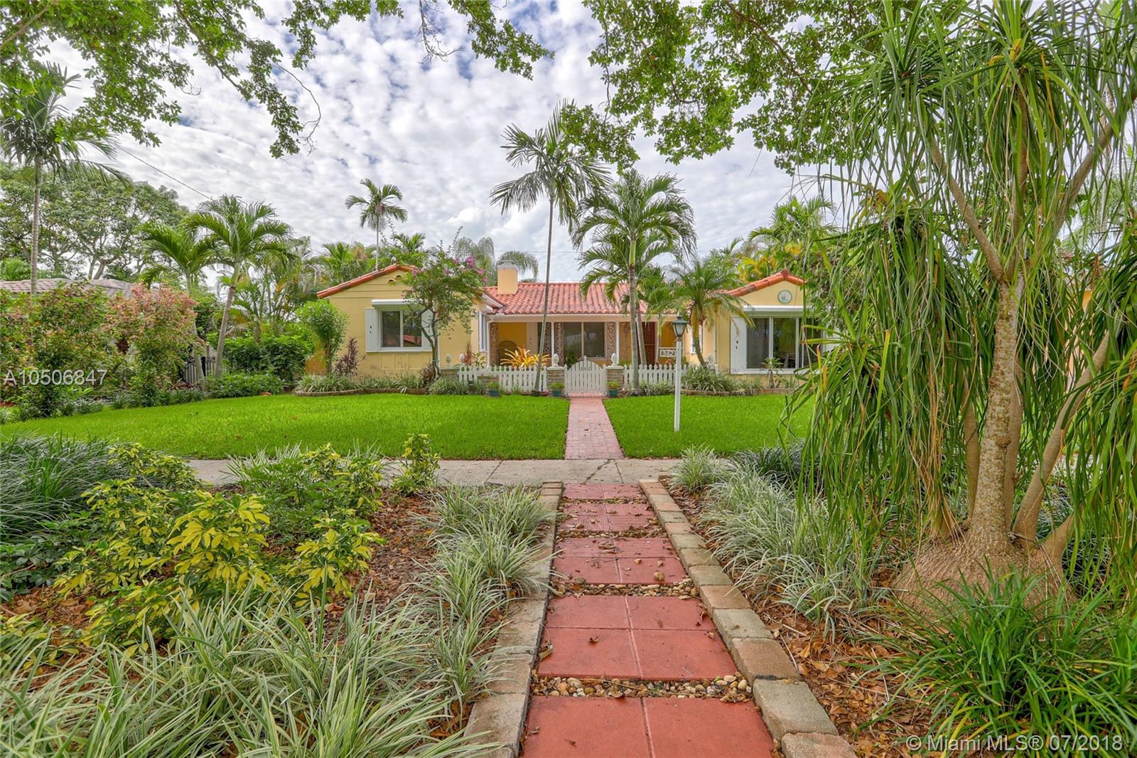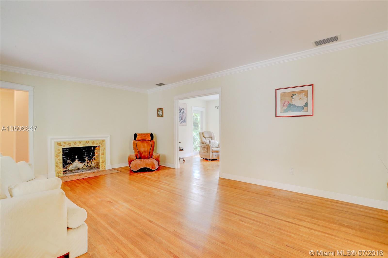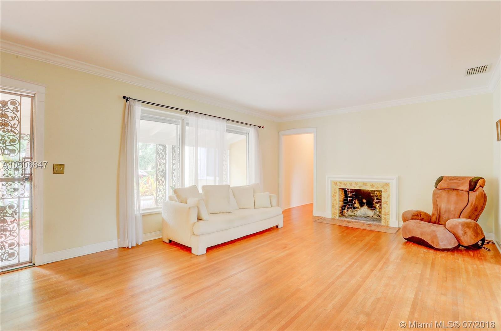 Beautiful three bedroom/two bath home in beautiful tree-lined community in Miami Shores! This quaint home has wood floors throughout main living area, tile floors in kitchen and marble tile in bathrooms. Stainless steel appliances and wood cabinets. Wood burning fireplace, crown moldings and impact windows, interior plantation shutters and exterior roll down shutters. Parking for two cars in the front and two more in the backyard, garage was converted into a third bedroom. Entertain in your beautiful backyard with natural pergola. Must see! New Electric, owner financing w. 50% down, 5% int, 5 year balloon. 13 month home warranty included.