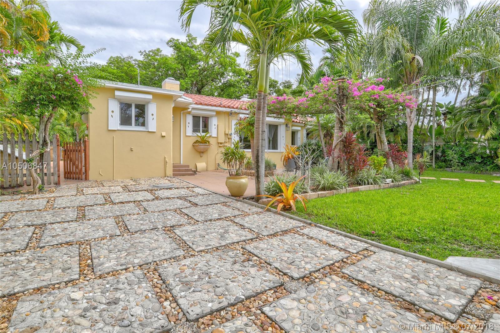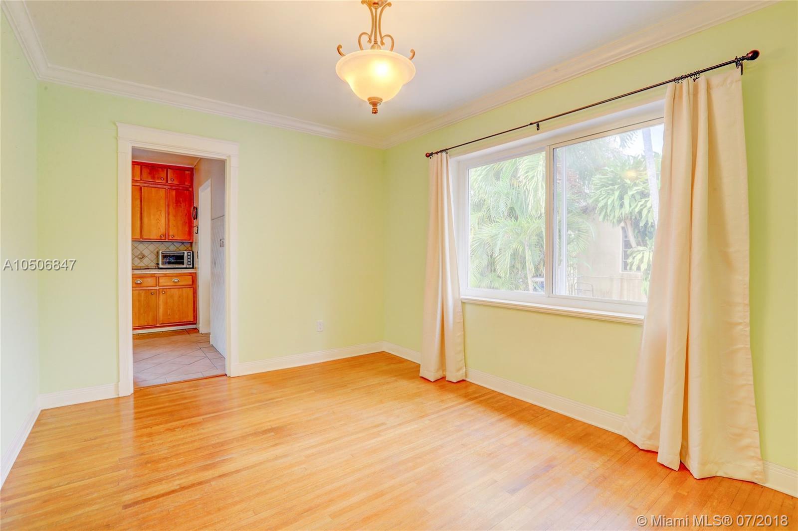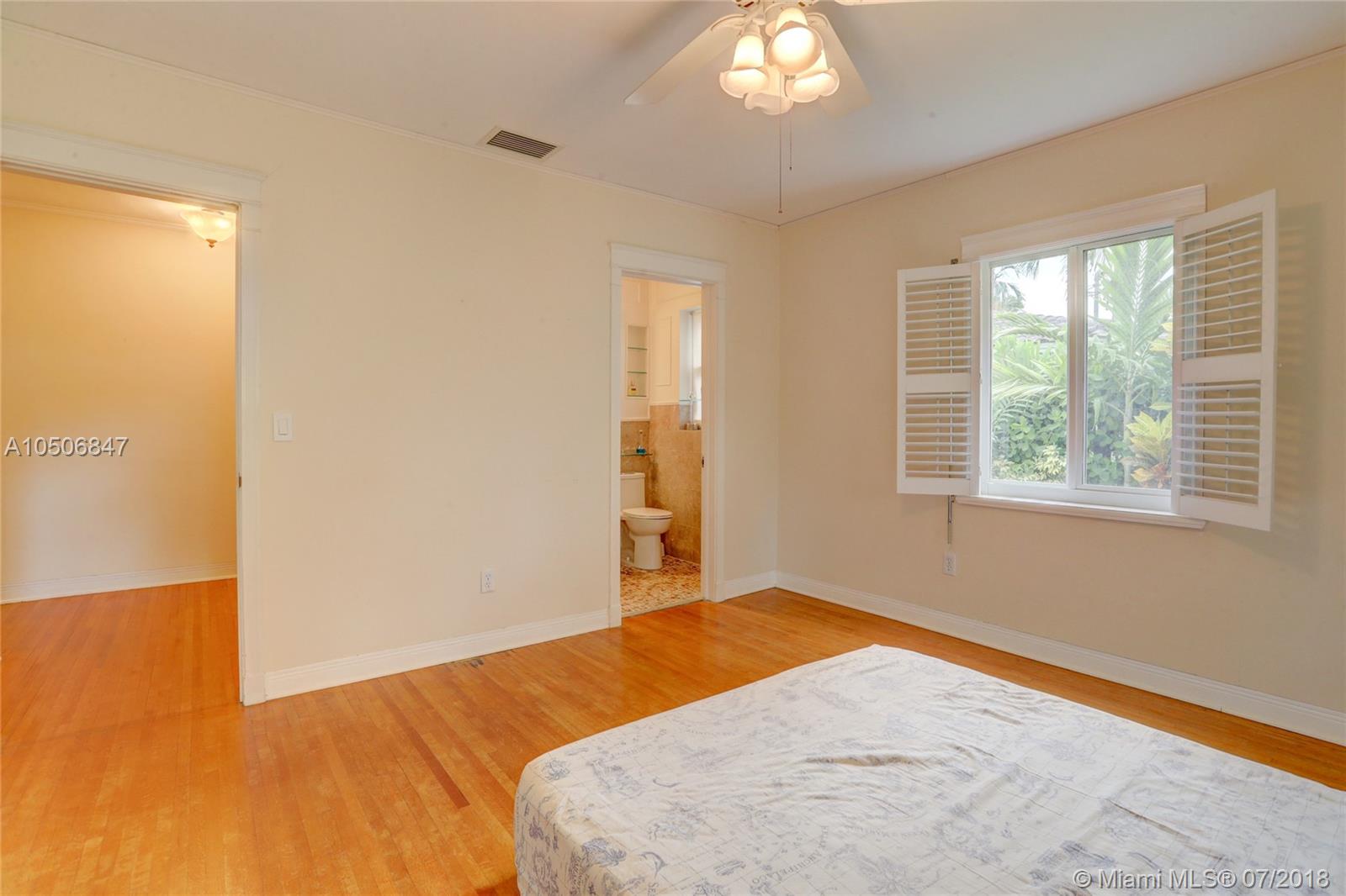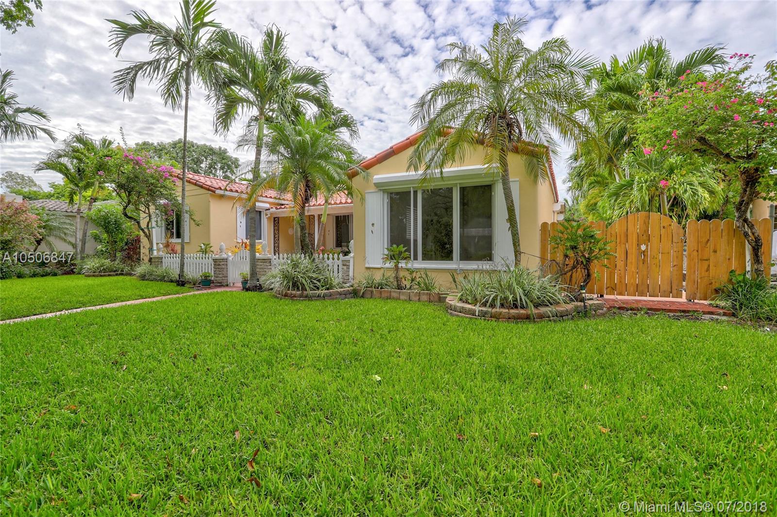 Beautiful three bedroom/two bath home in beautiful tree-lined community in Miami Shores! This quaint home has wood floors throughout main living area, tile floors in kitchen and marble tile in bathrooms. Stainless steel appliances and wood cabinets. Wood burning fireplace, crown moldings and impact windows, interior plantation shutters and exterior roll down shutters. Parking for two cars in the front and two more in the backyard, garage was converted into a third bedroom. Entertain in your beautiful backyard with natural pergola. Must see! New Electric, owner financing w. 50% down, 5% int, 5 year balloon. 13 month home warranty included.