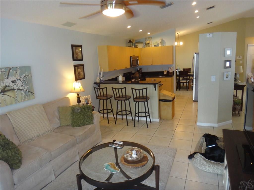 Turnkey 3 bedroom/ 2 bath/ 2 car garage home built in 2002. Open kitchen with stainless appliances and granite countertops-perfect for socializing! All tile floors, walk-in closets, full sized laundry room and plenty of storage. Huge fenced-in back yard with screened-in porch. A safe place to let your children and pets run free! Impact sliders. Water softener. Large pets are ok, just no farm animals. Free cable included in low maintenance. Community pool. Nothing to do here but move in! Plenty of parking.