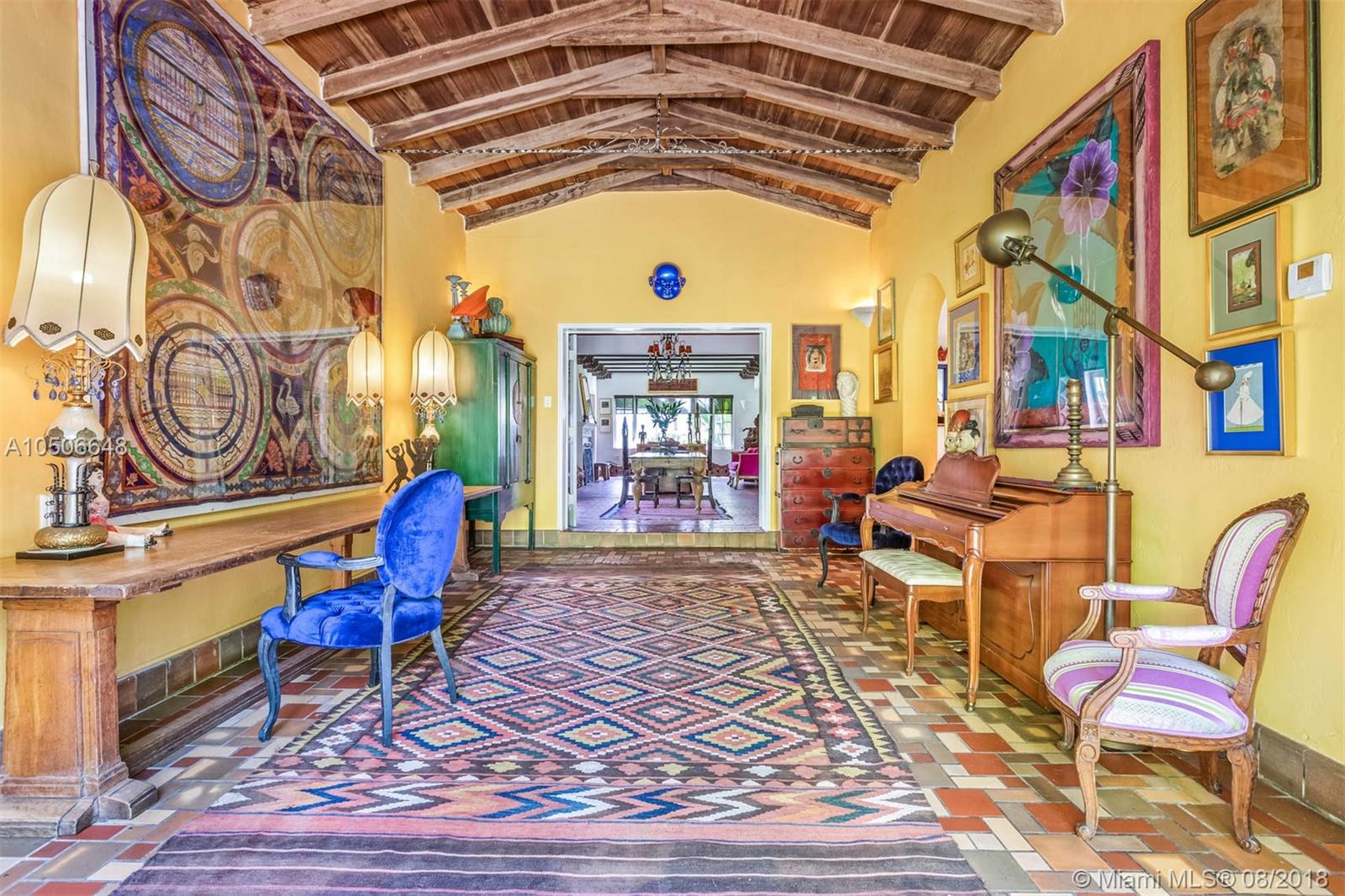 Style and history combine in this regal 1933 residence. Rich in original architectural details, the home has an easy functional floor plan, a central axis with exterior doors in all 4 directions. The grand Music Room which could be one of the most beautiful rooms in Miami Beach has a 16ft cathedral ceiling & french doors that open to the garden. Situated on an oversized lot of 11,250 SF, the park like grounds are filled w fruit trees & palms & has ample room for a new master suite addition & pool. Bedrooms are split; first floor has 1BD, 1.5 BAs & second floor has 2 BD and 1 BA. Includes a 1 car garage. This highly desirable Mid- Beach, Royal Palm Ave address is blocks away to schools, shops, restaurants, Mt Sinai Hospital, the Beach and Causeway to Miami.