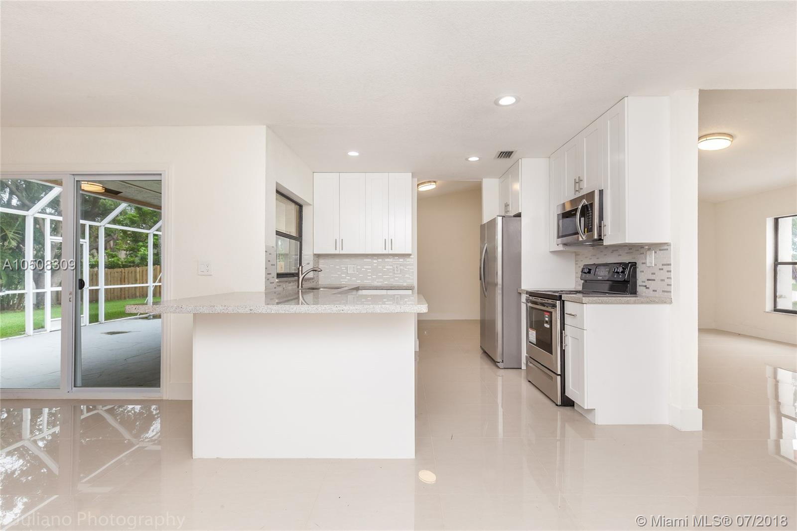 EXCELLENT LOCATION!!! SINGLE LEVEL HOME IN PRESTIGIOUS FALCON LEA IN DAVIE, MOVIE IN READY!!!FRESHLY PAINTED INSIDE OUT 3 BEDROOMS 2 BATHROOMS FEATURES PORCELAIN TILE FLOORS THROUGH THE HOUSE, WOOD FLOORS IN THE BEDROOMS BRAND NEW GOURMET KITCHEN. GRANITE COUNTER TOPS, BATHROOMS, BRAND NEW ROOF, BRAND NEW STAINLESS STEEL APPLIANCES, HUGE BACKYARD.