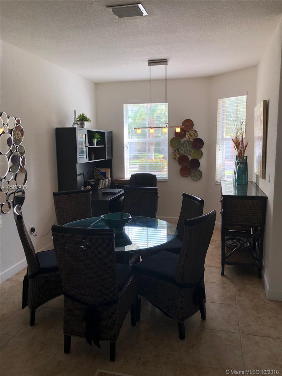 Beautiful Townhouse in Madeira II at Islands at Doral. This Mariana model features 4 bed / 3 bath, 1 bed and bath downstairs. The kitchen features granite counter tops, and stainless steel appliances. Ceramic tile in first floor, bamboo wood in second floor and stairs. Also features a stainless steel glass railing. Home has impact windows in the front of the house and a Beautiful patio with brick pavers. Walking distance to A+ Schools, DR Rolando Espinoza and Ronald Reagan High School, and Easy access to major highways.